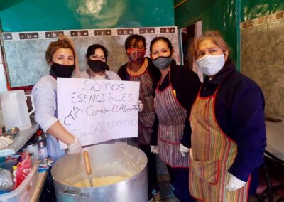 Las mujeres trabajadoras esenciales “parando” la olla, poniendo el cuerpo en cada barriada, garantizando aquello que es irrenunciable ante cualquier pandemia ante cualquier realidad, como es la comida, el alimento de niñas y niños que viven hacinados. El Estado arremetía con campañas que sugerían el recurrente lavado de manos y muchos barrios de cualquier parte del país sin acceso al agua potable.