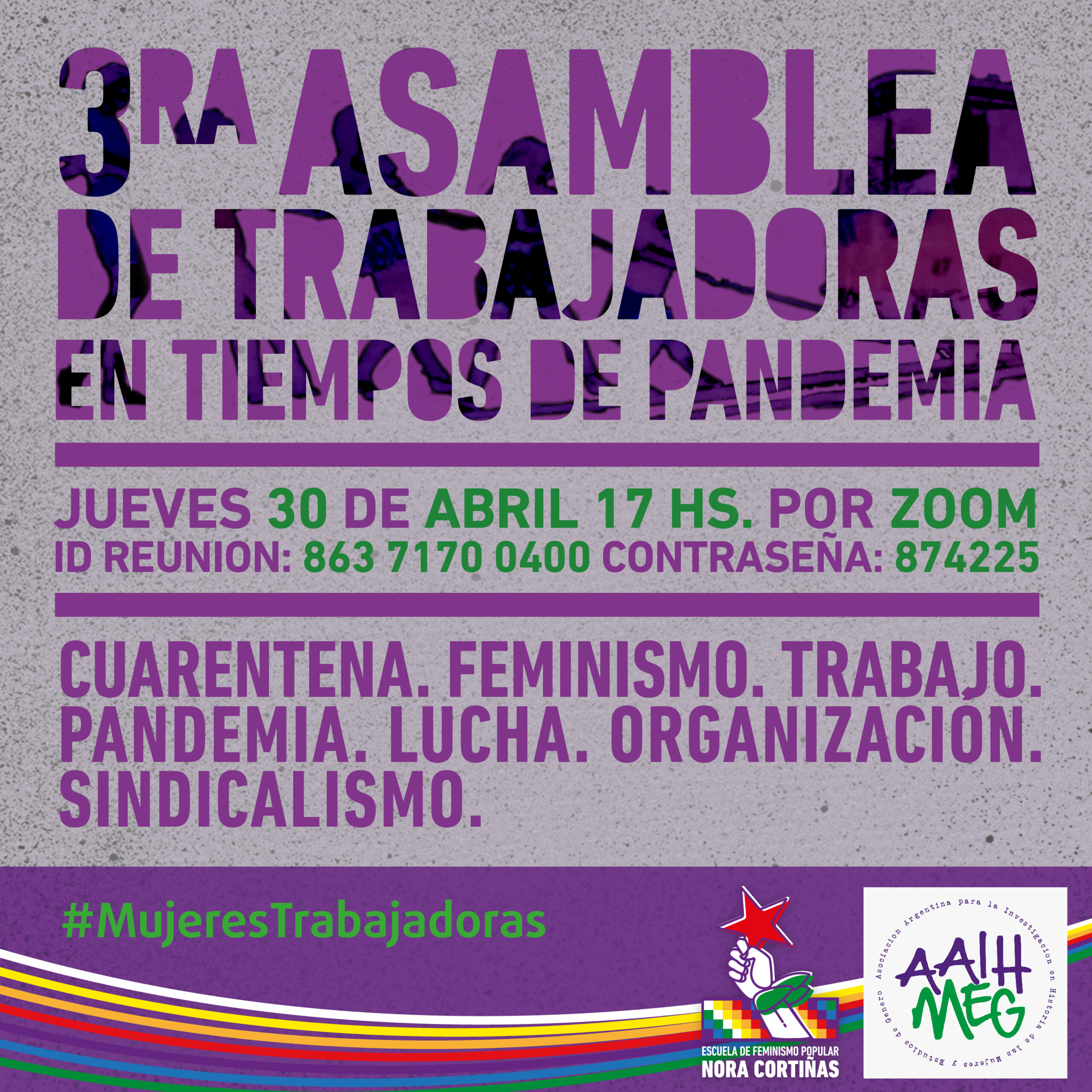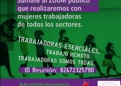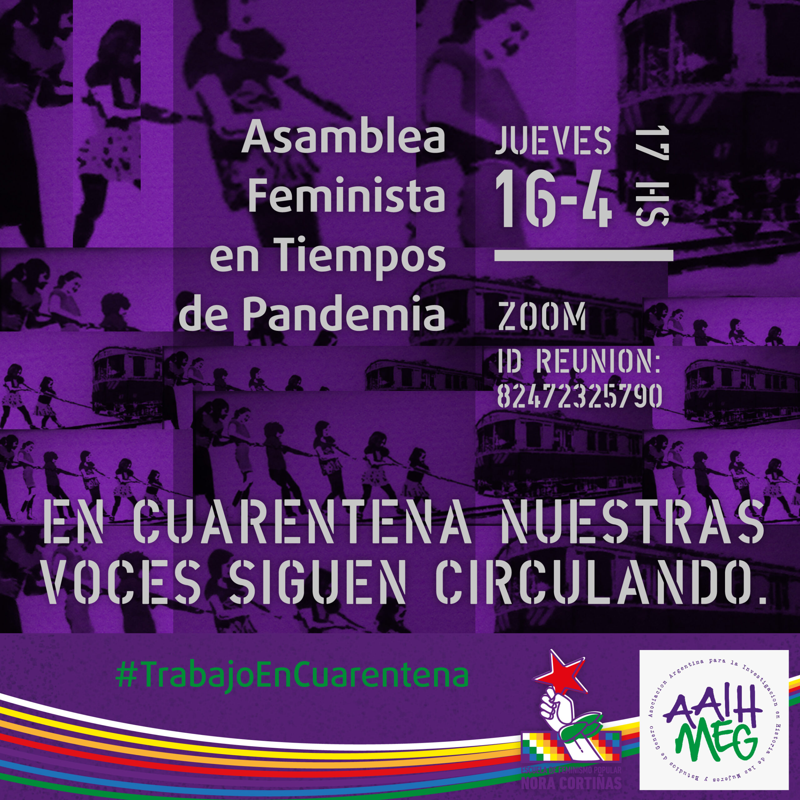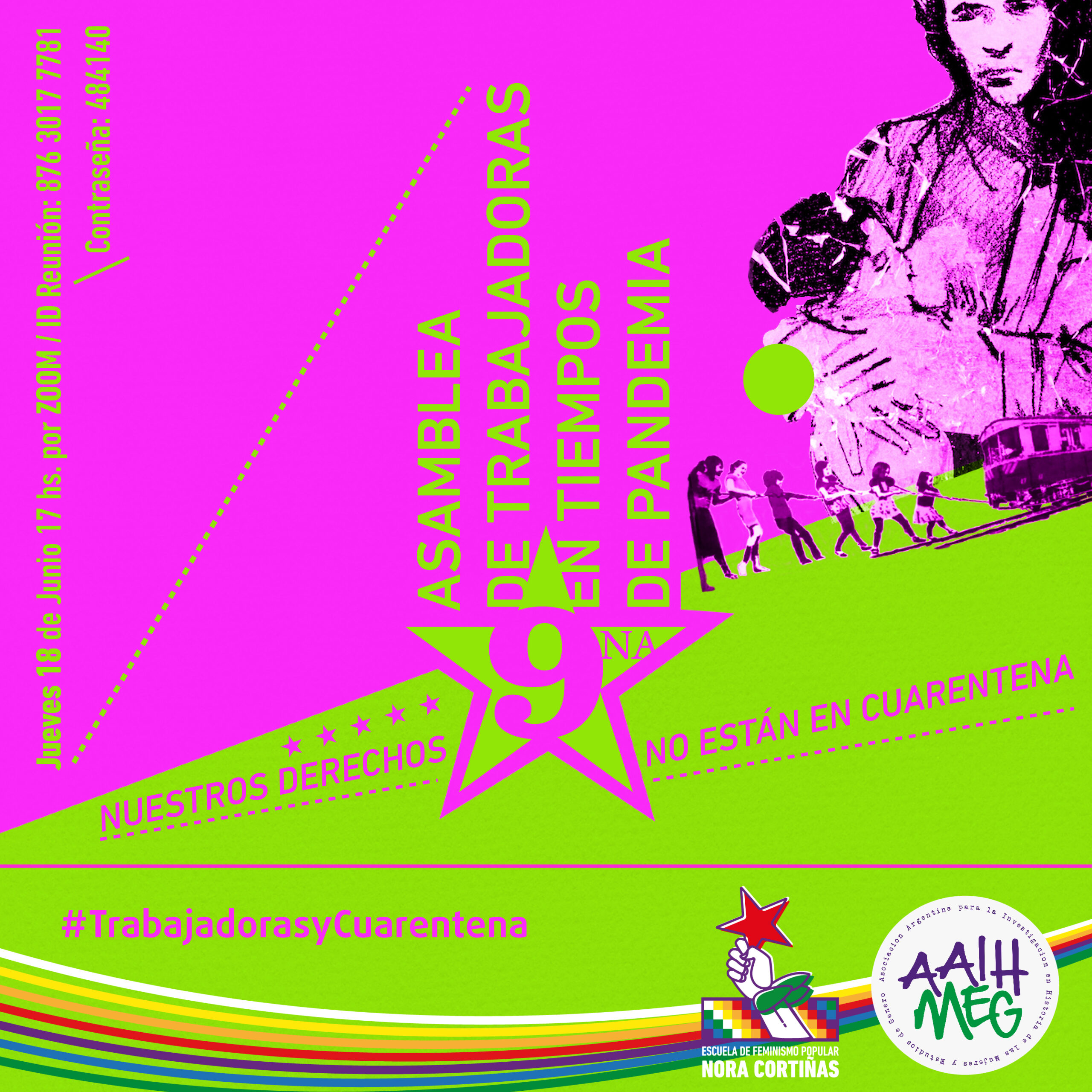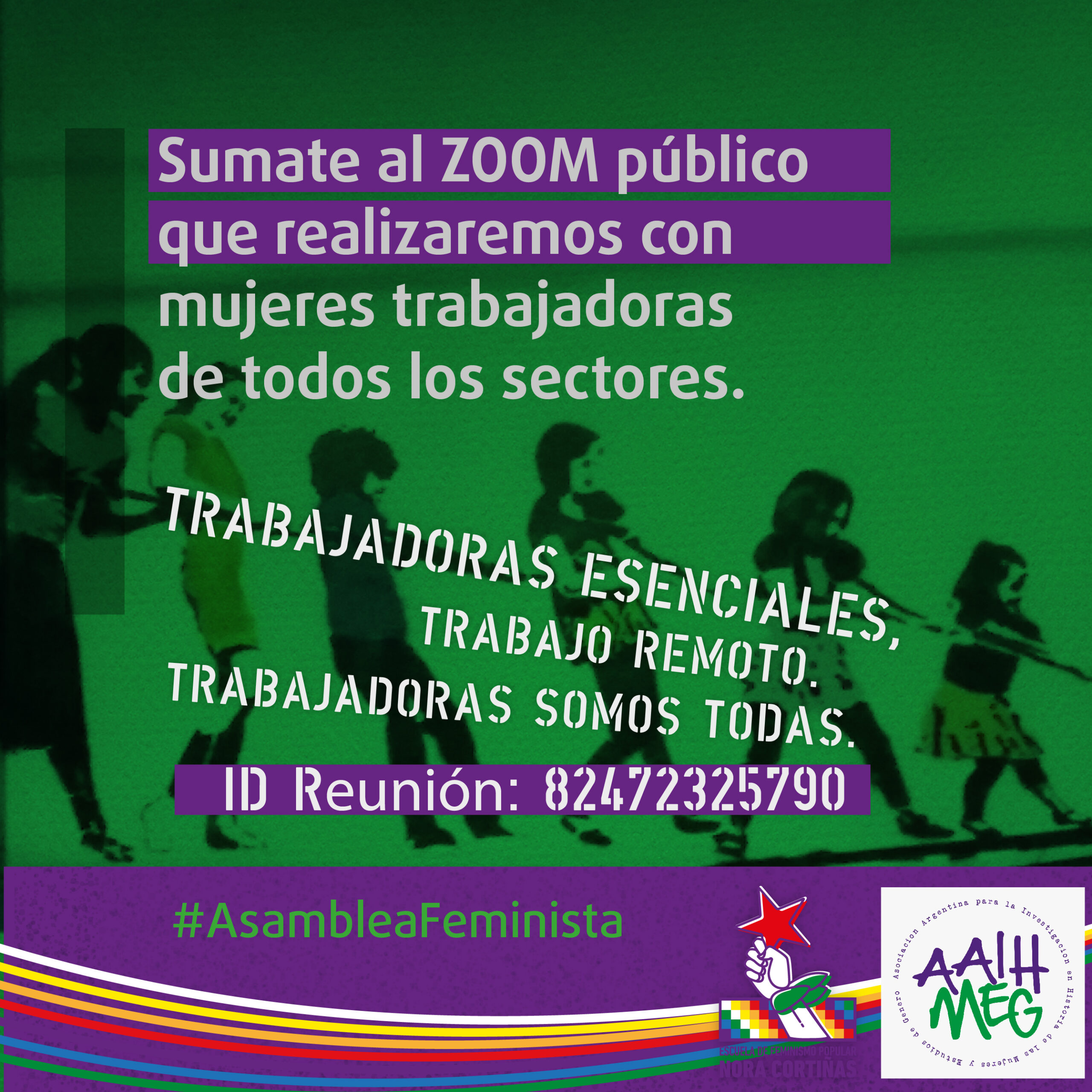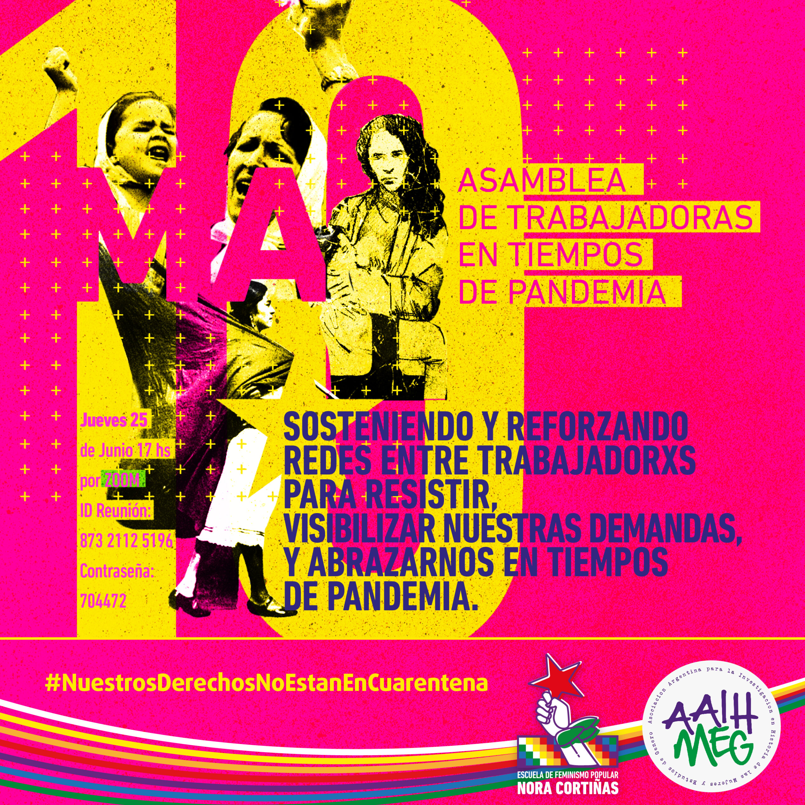 “Asamblea de Trabajadoras en tiempos de Pandemia” donde más de 80 trabajadoras se dieron cita por primera vez el 16 de abril a través de una plataforma virtual de La Escuela de Feminismo Popular Norita Cortiñas y la Asociación de Investigadoras de Historia de las Mujeres y Estudios de Género (AAIHMEG).