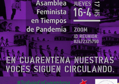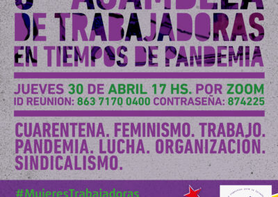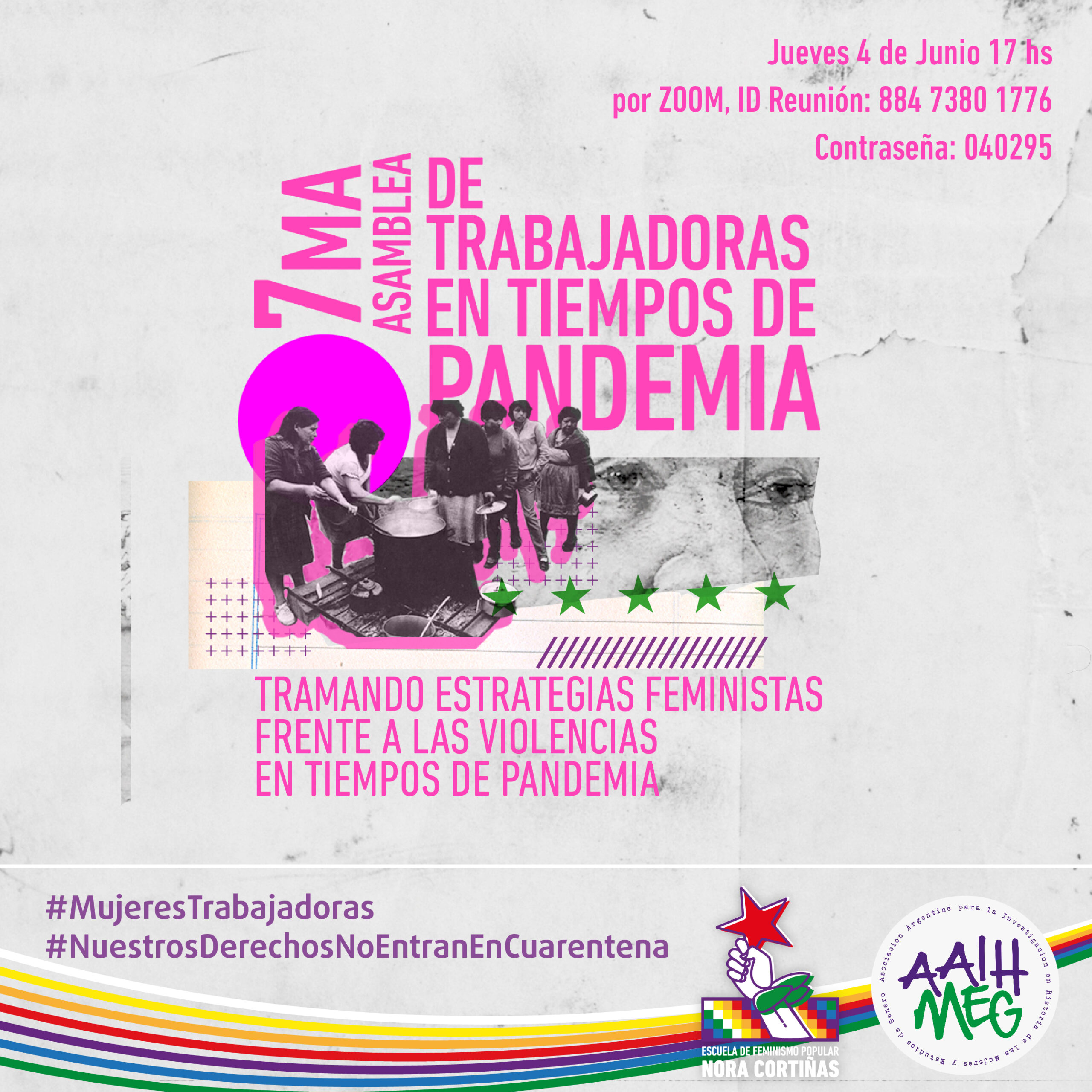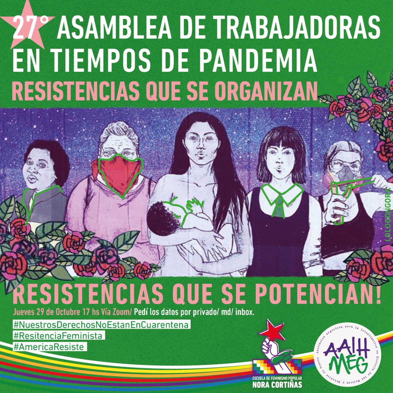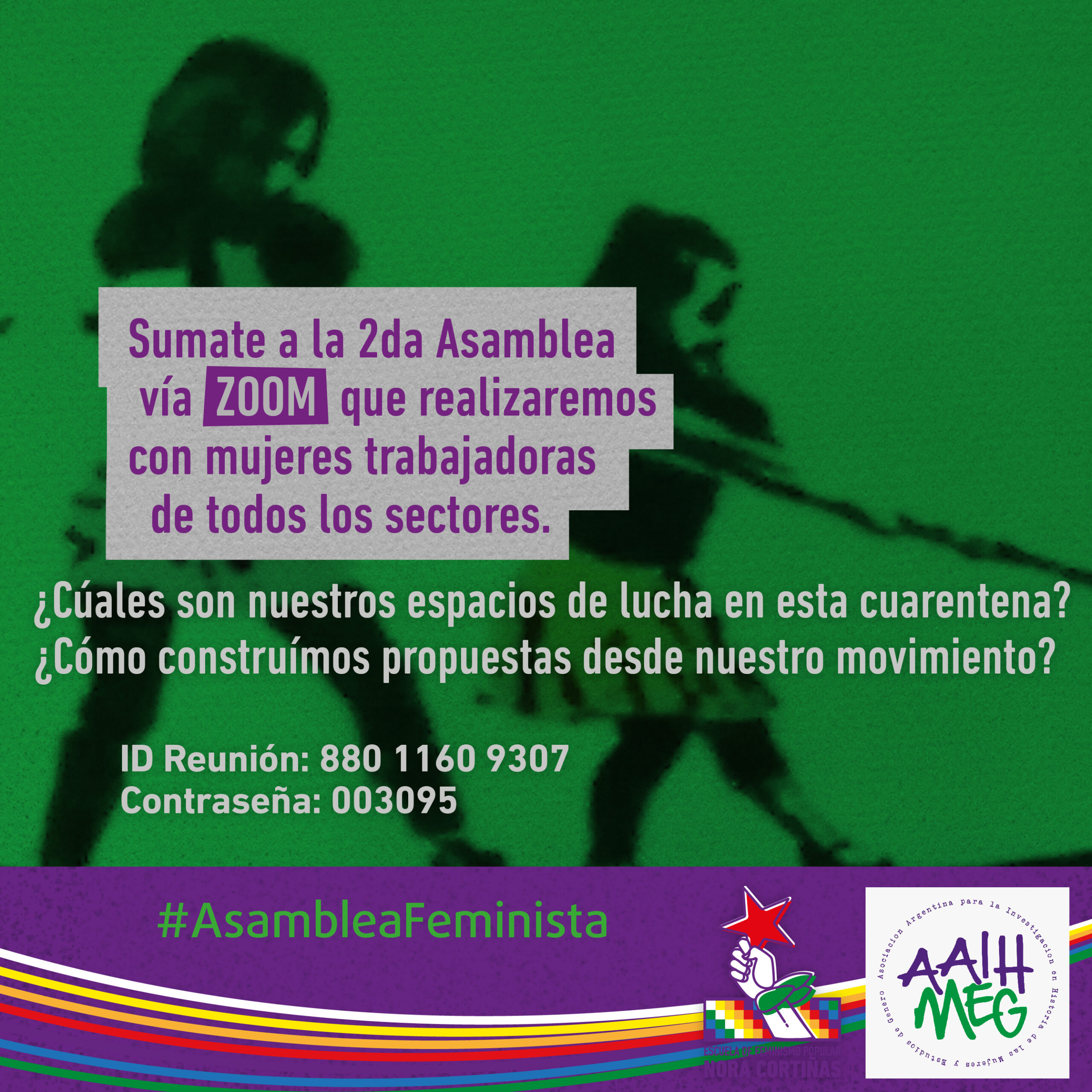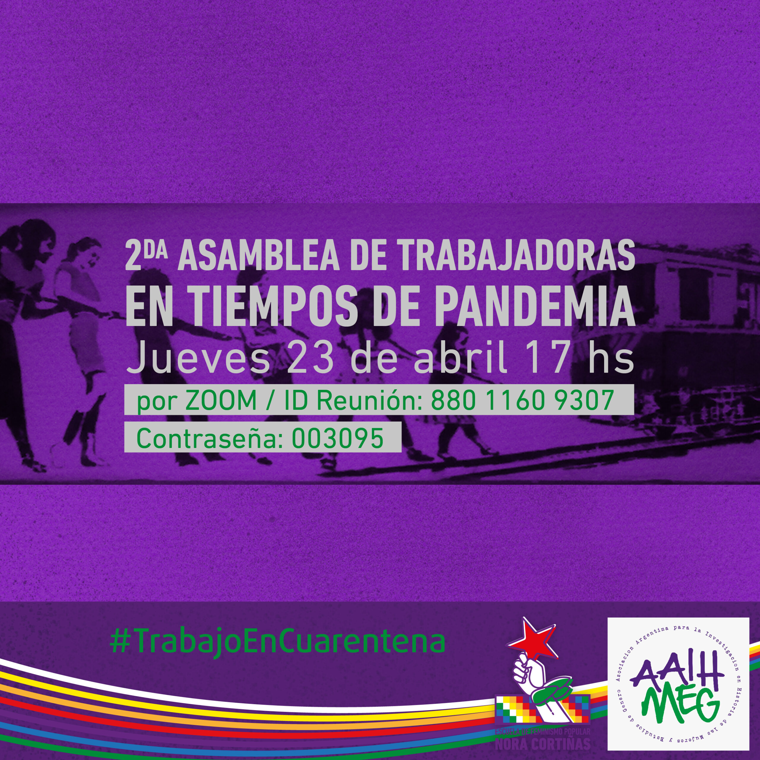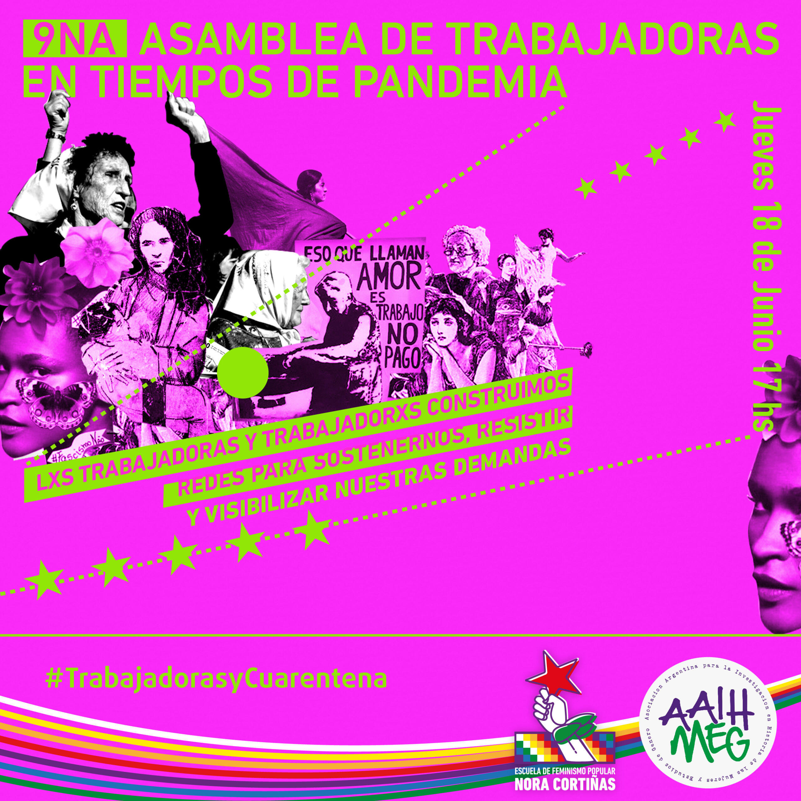 “Asamblea de Trabajadoras en tiempos de Pandemia” donde más de 80 trabajadoras se dieron cita por primera vez el 16 de abril a través de una plataforma virtual de La Escuela de Feminismo Popular Norita Cortiñas y la Asociación de Investigadoras de Historia de las Mujeres y Estudios de Género (AAIHMEG).
