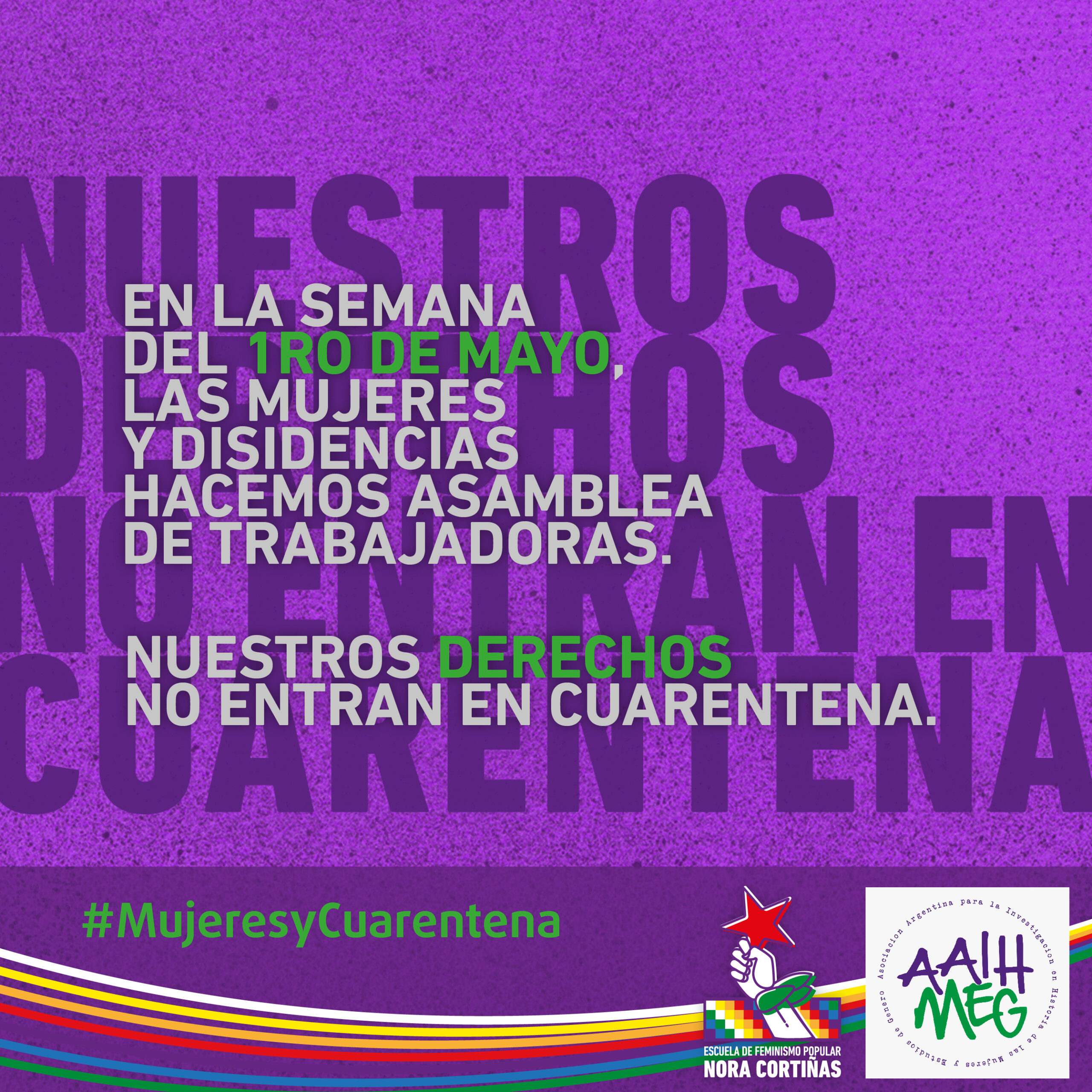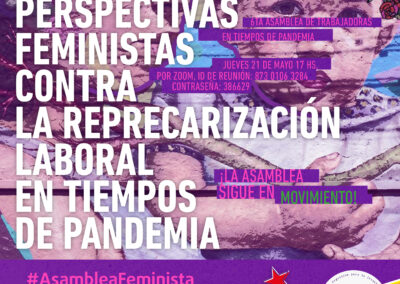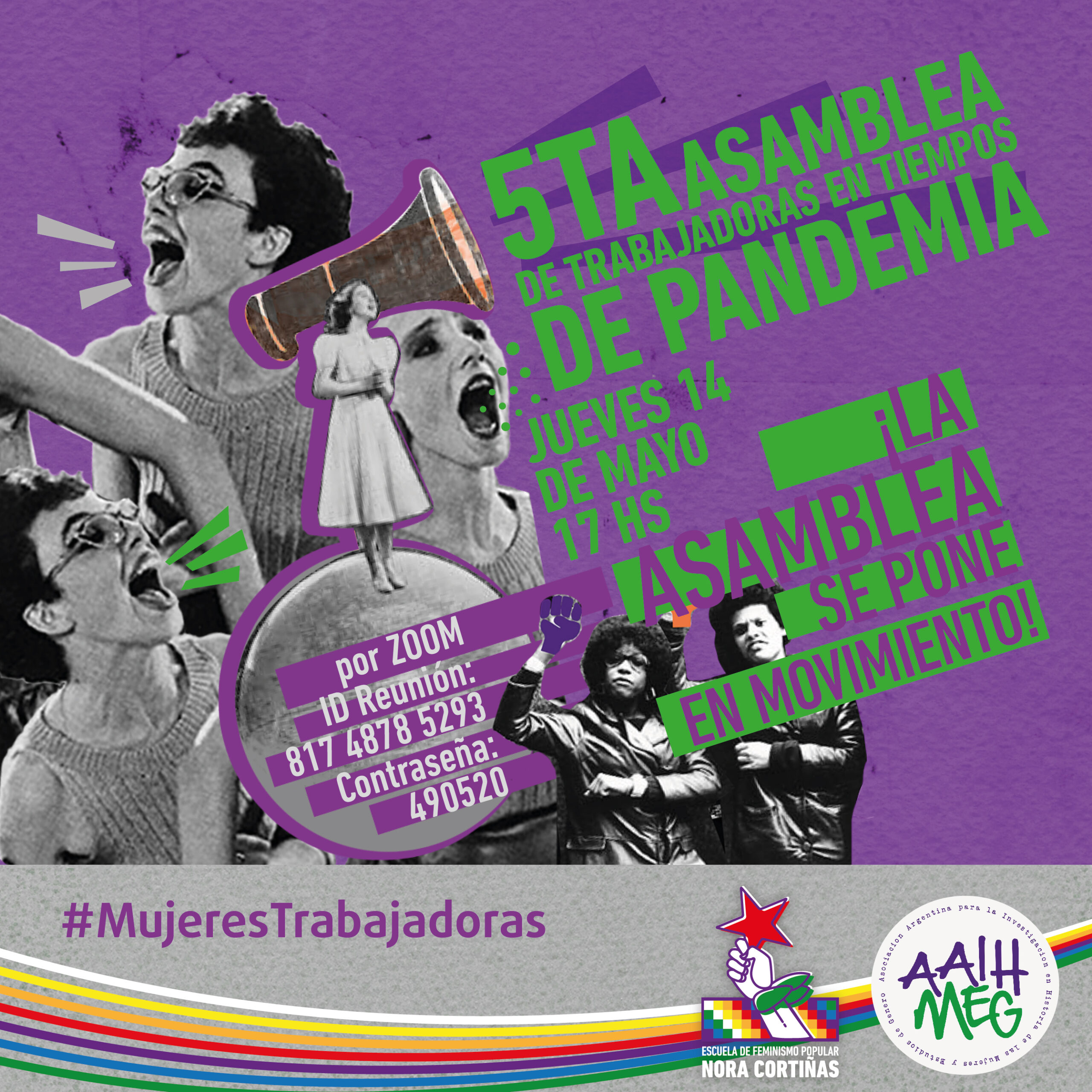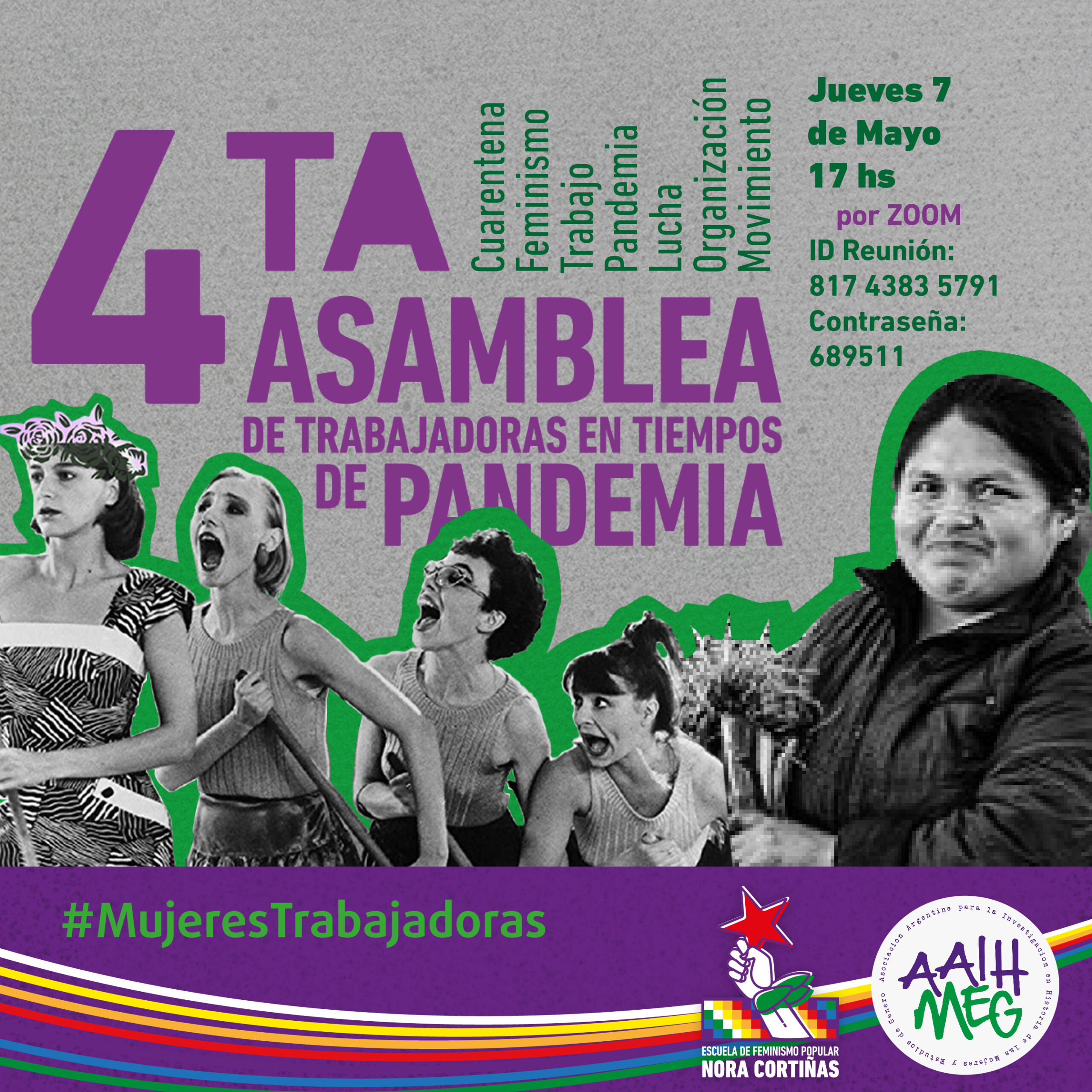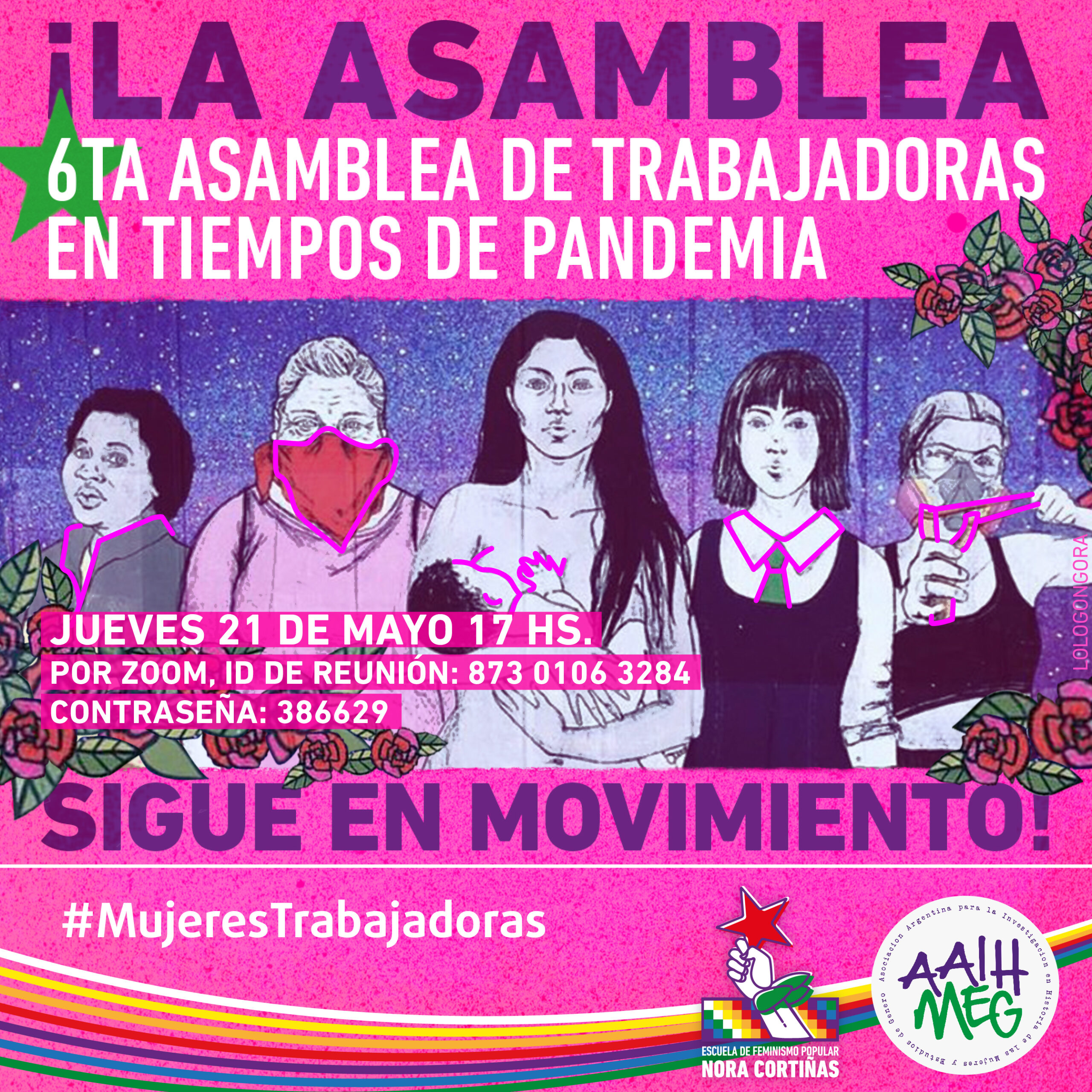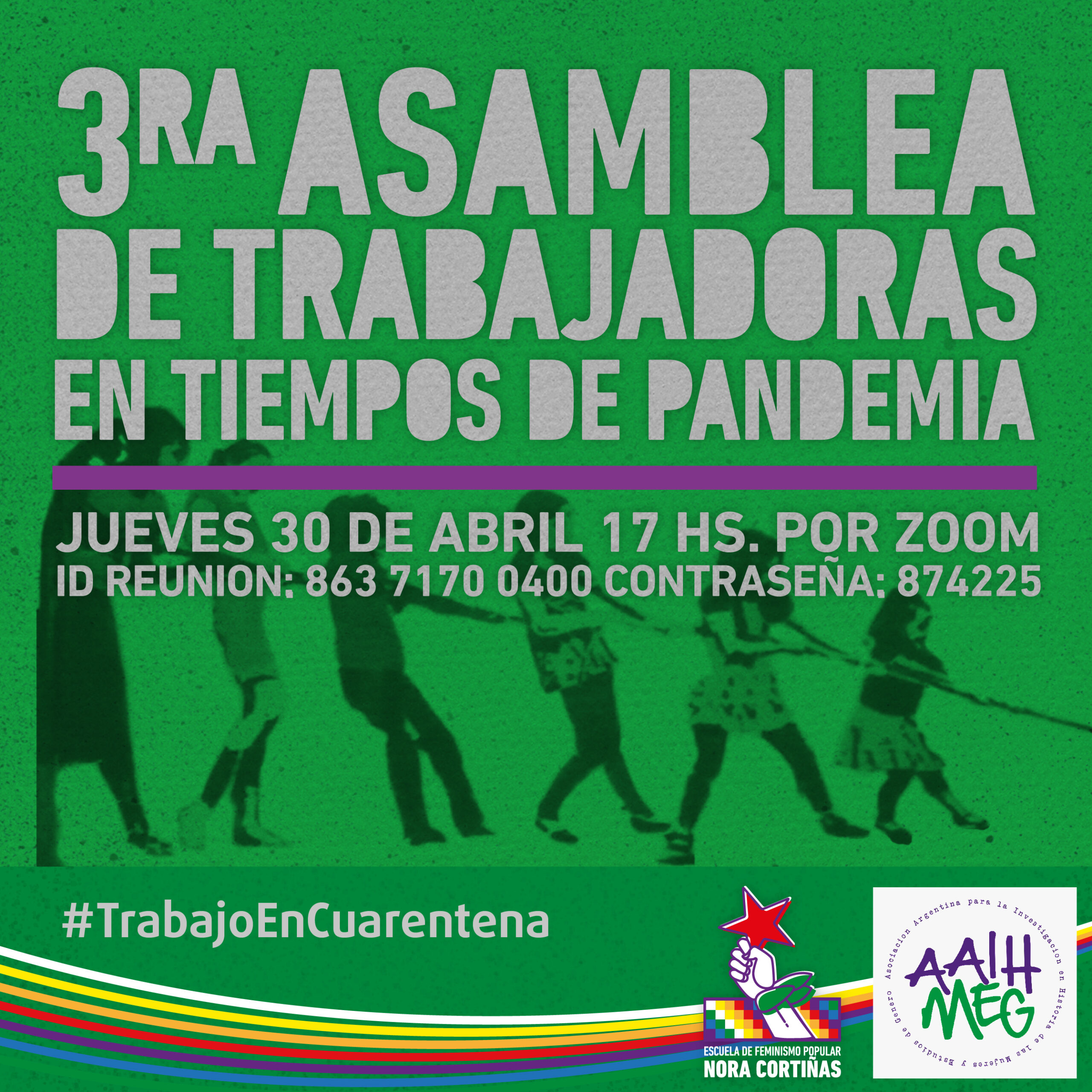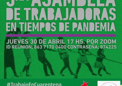 “Asamblea de Trabajadoras en tiempos de Pandemia” donde más de 80 trabajadoras se dieron cita por primera vez el 16 de abril a través de una plataforma virtual de La Escuela de Feminismo Popular Norita Cortiñas y la Asociación de Investigadoras de Historia de las Mujeres y Estudios de Género (AAIHMEG).
