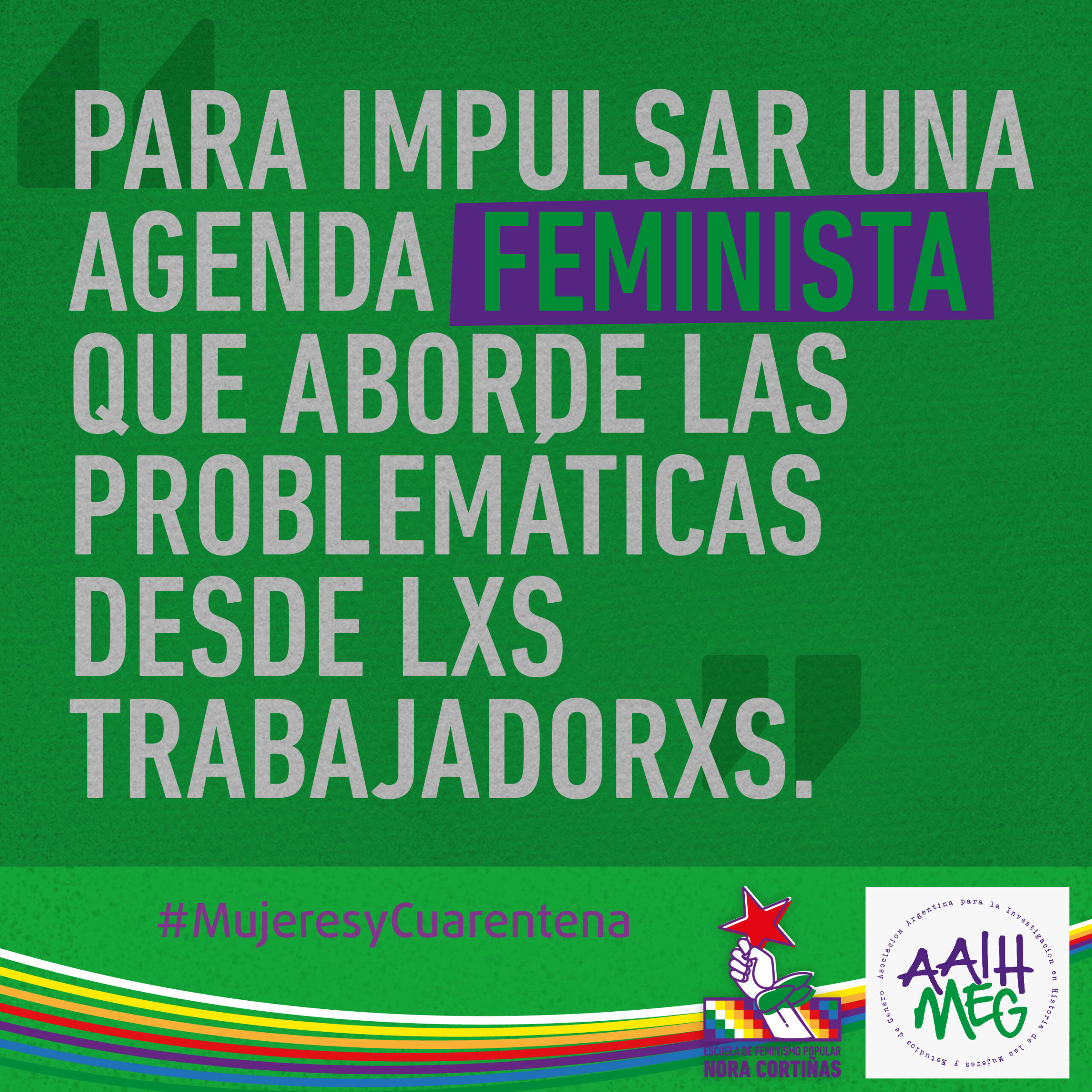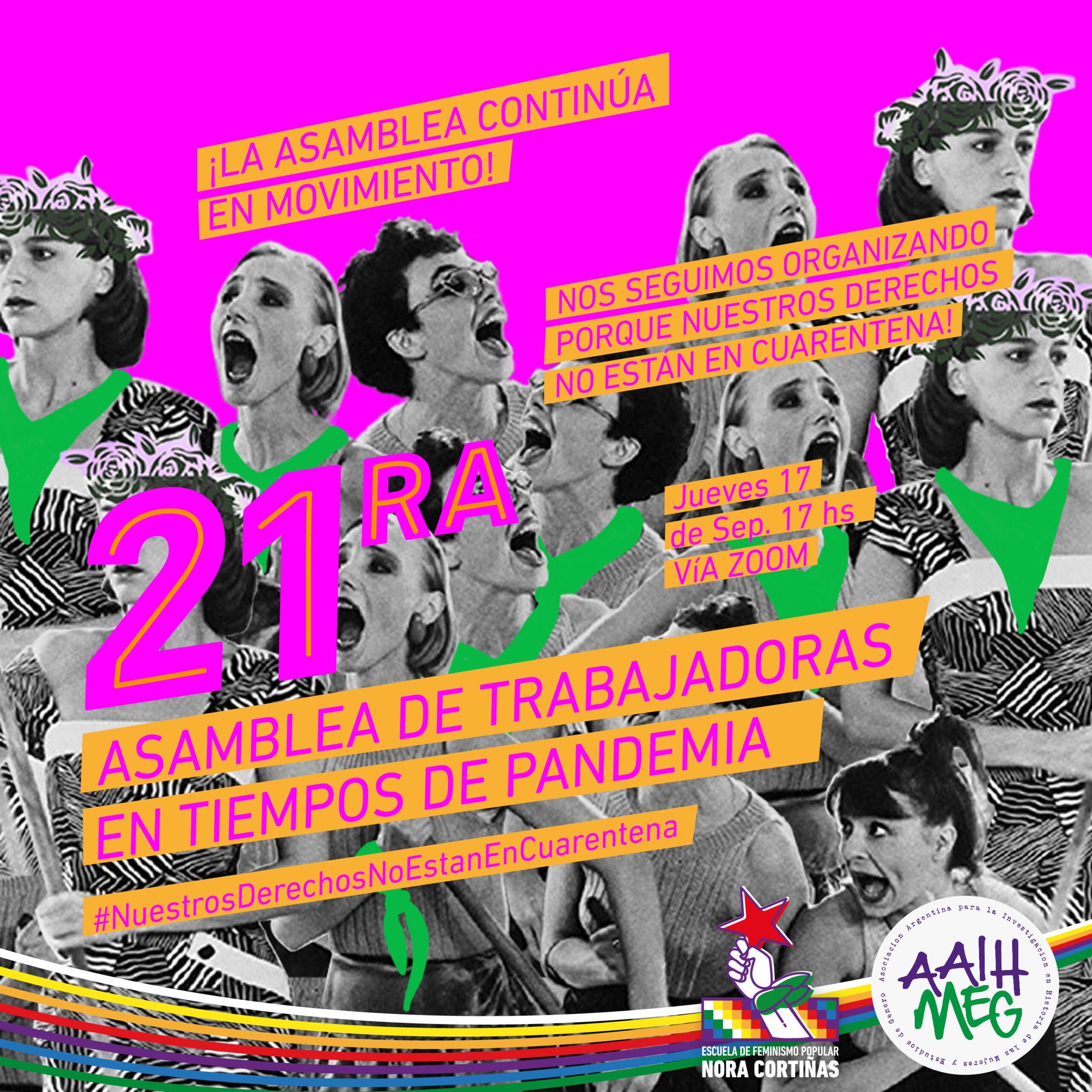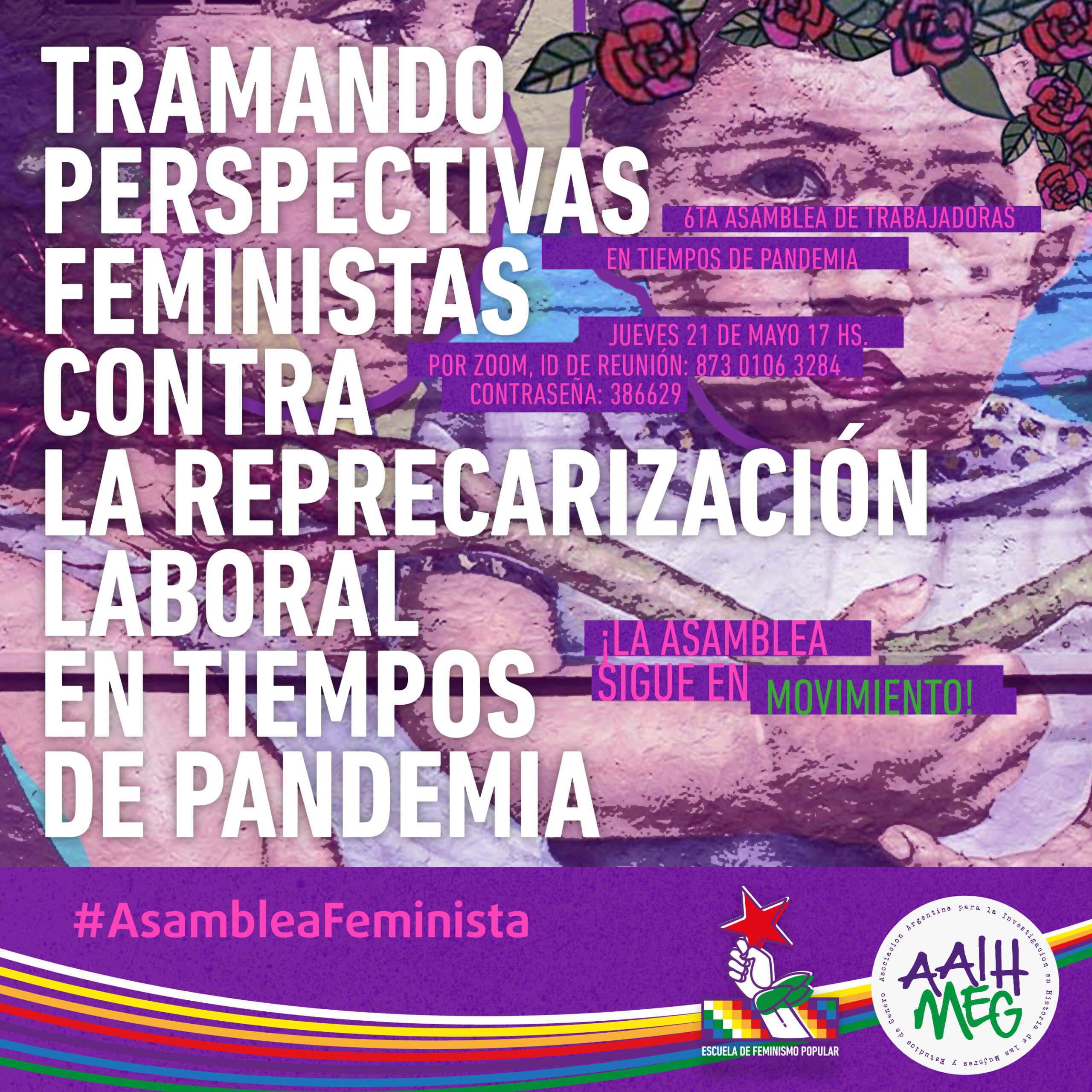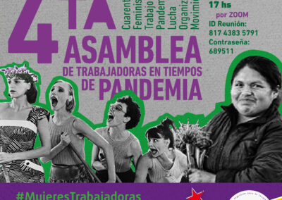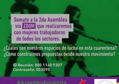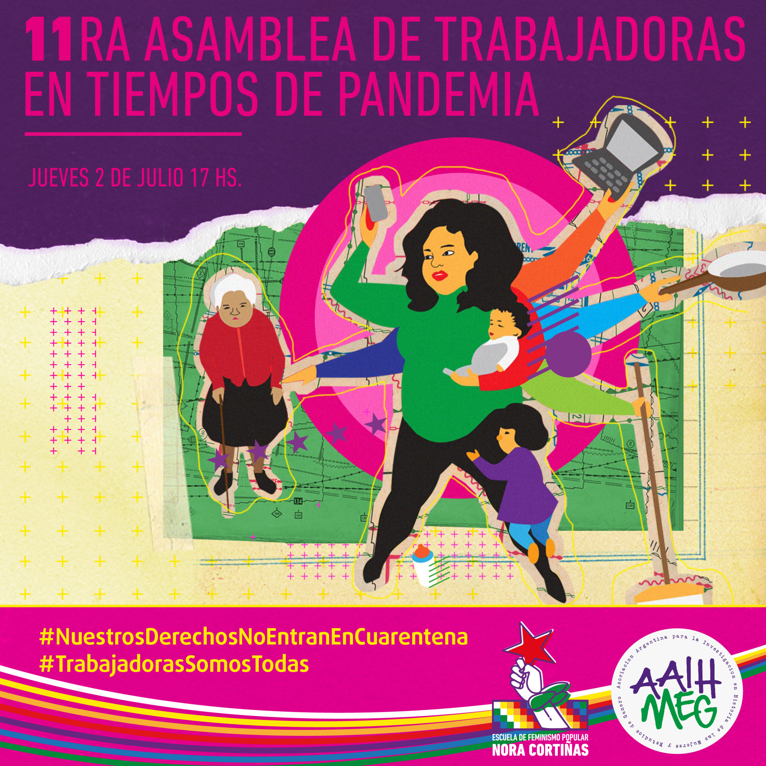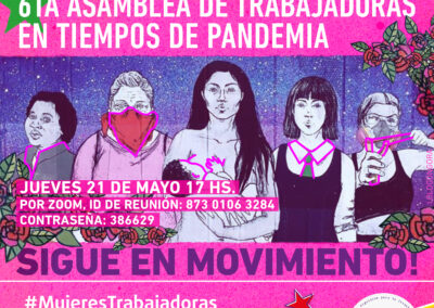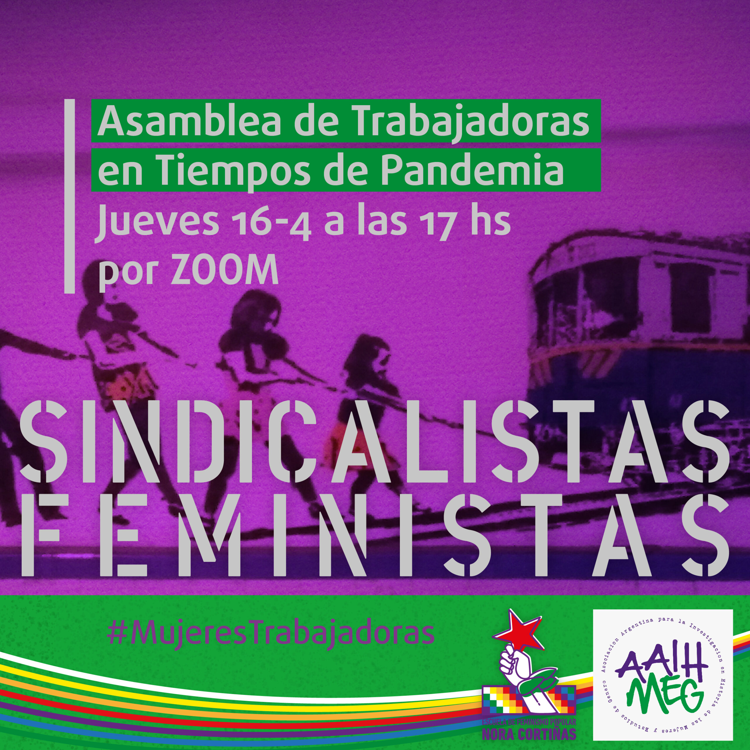 “Asamblea de Trabajadoras en tiempos de Pandemia” donde más de 80 trabajadoras se dieron cita por primera vez el 16 de abril a través de una plataforma virtual de La Escuela de Feminismo Popular Norita Cortiñas y la Asociación de Investigadoras de Historia de las Mujeres y Estudios de Género (AAIHMEG).