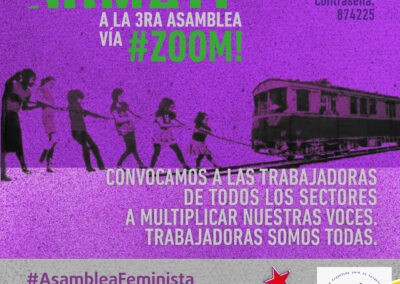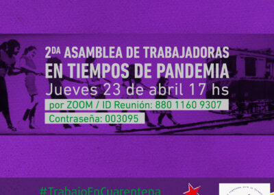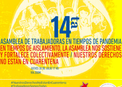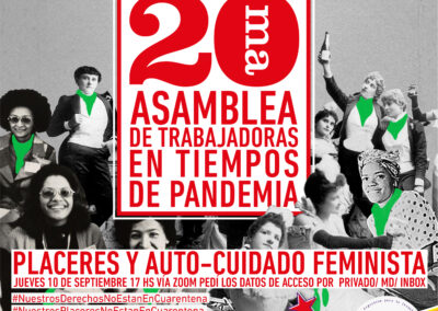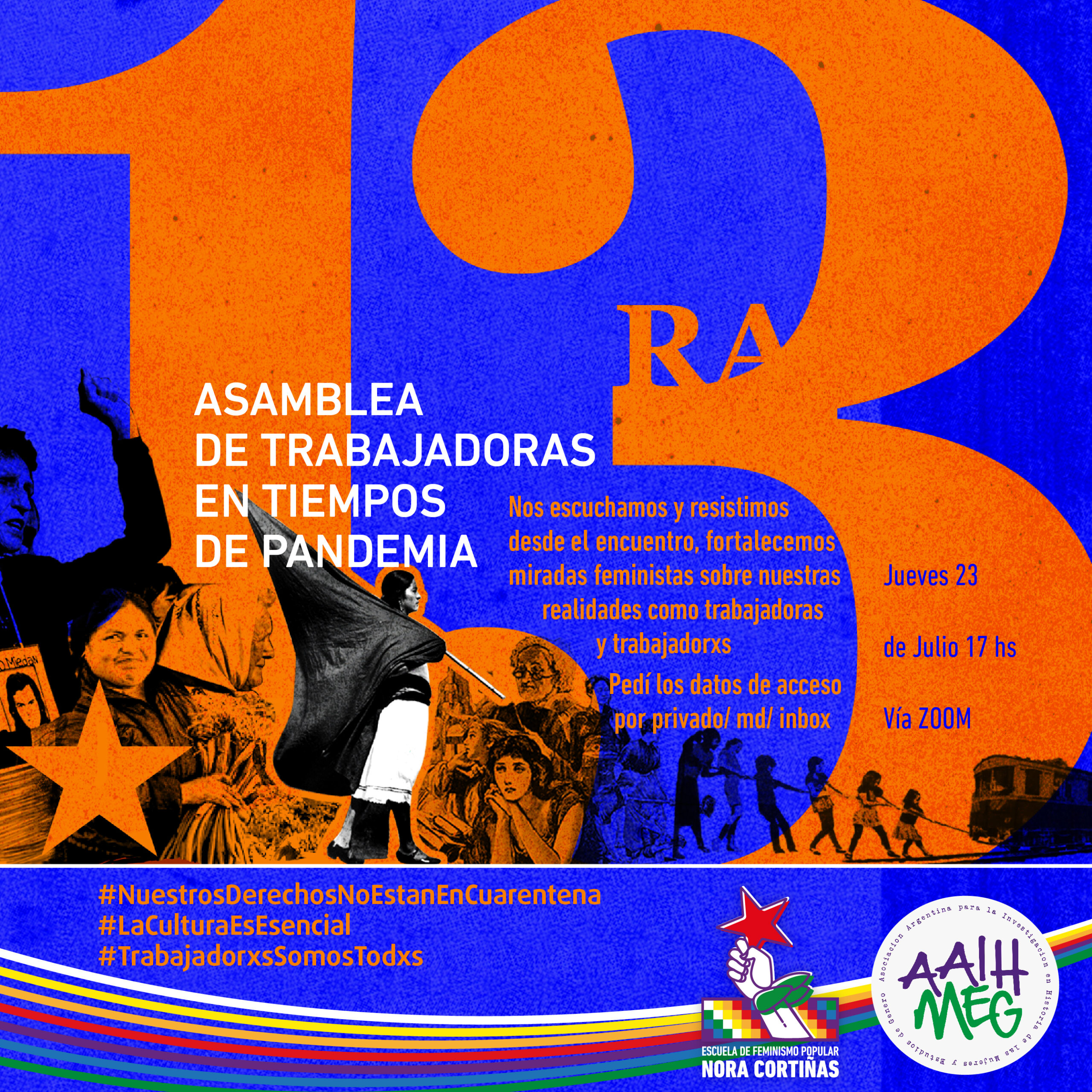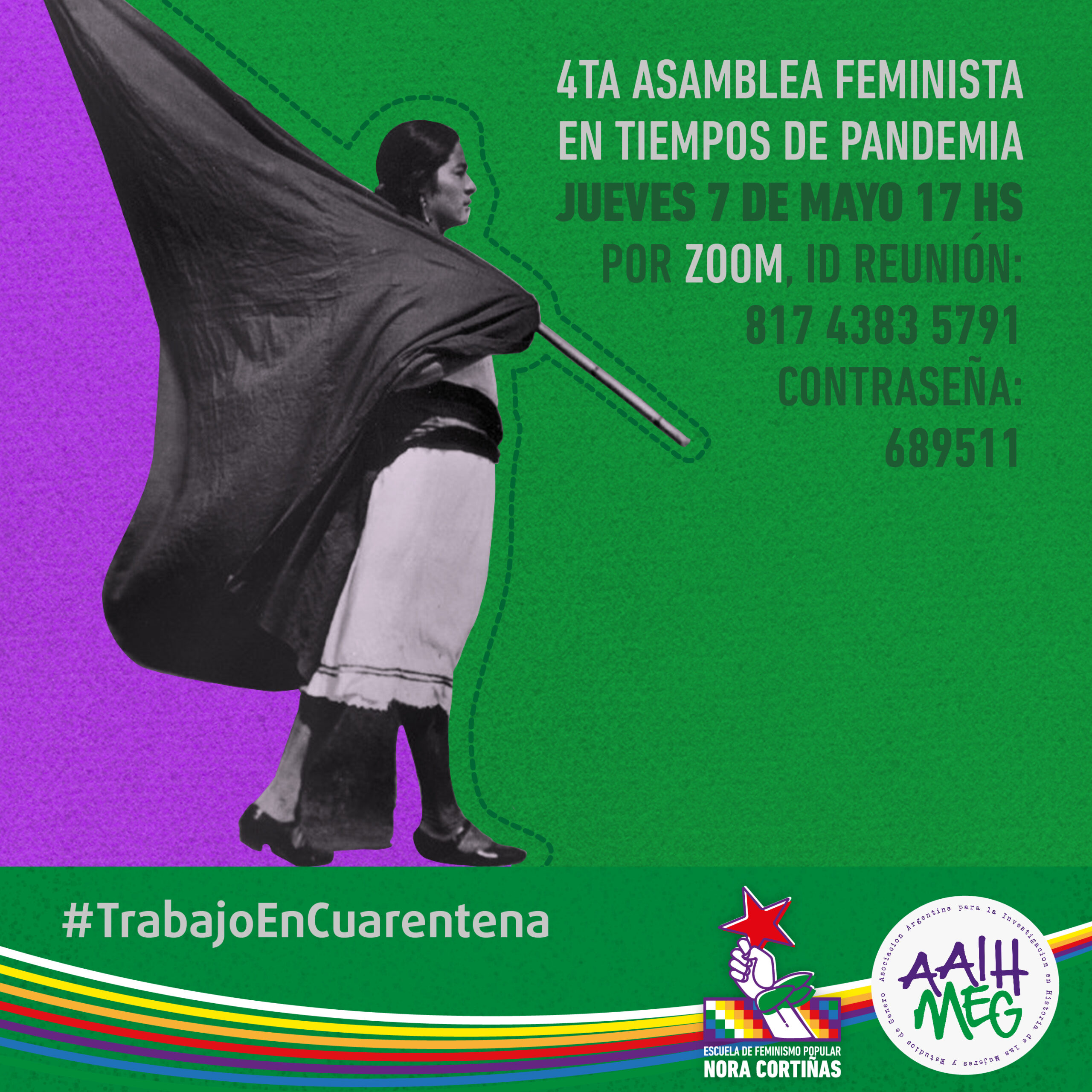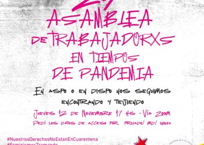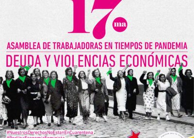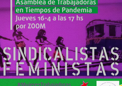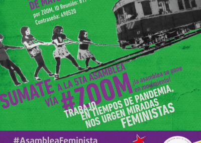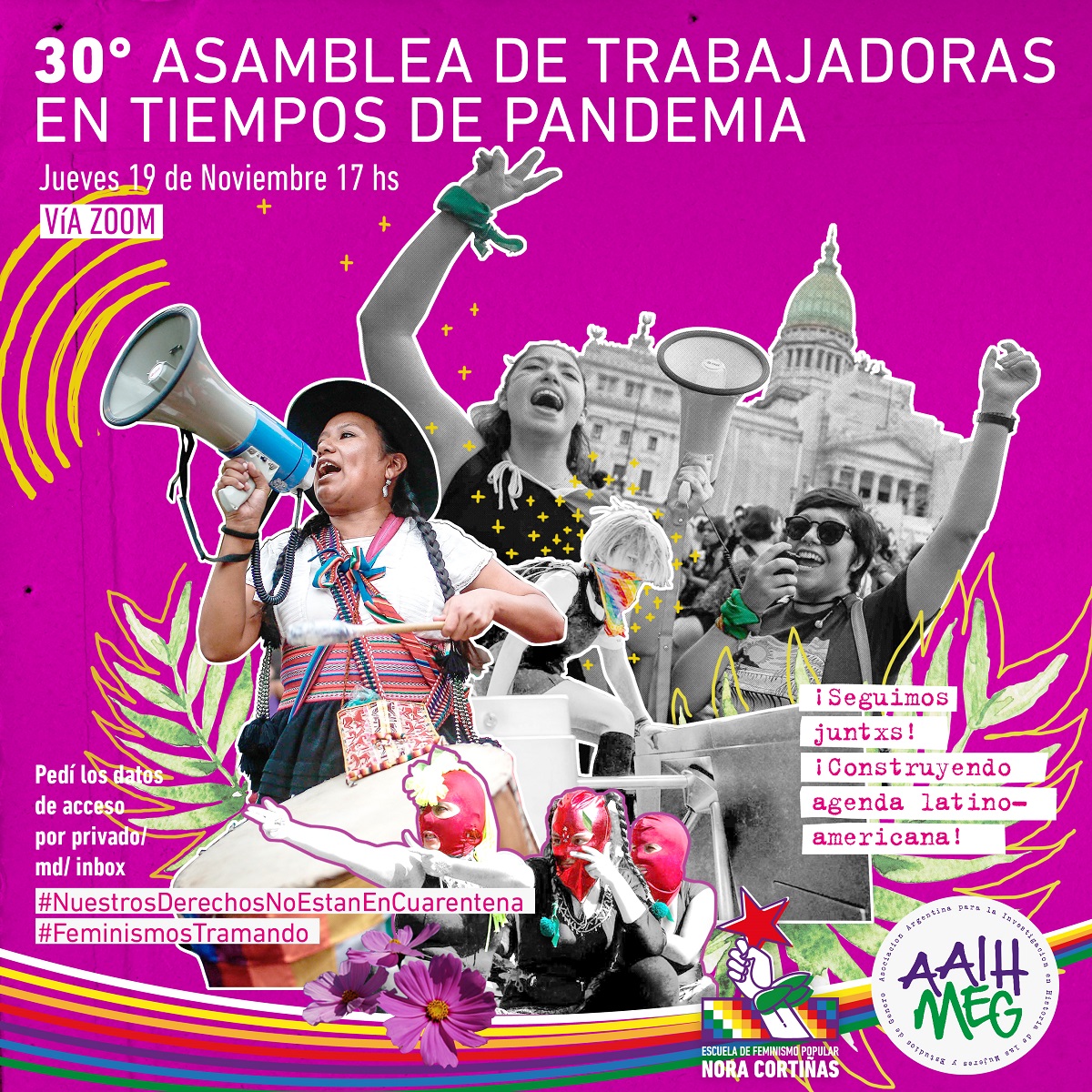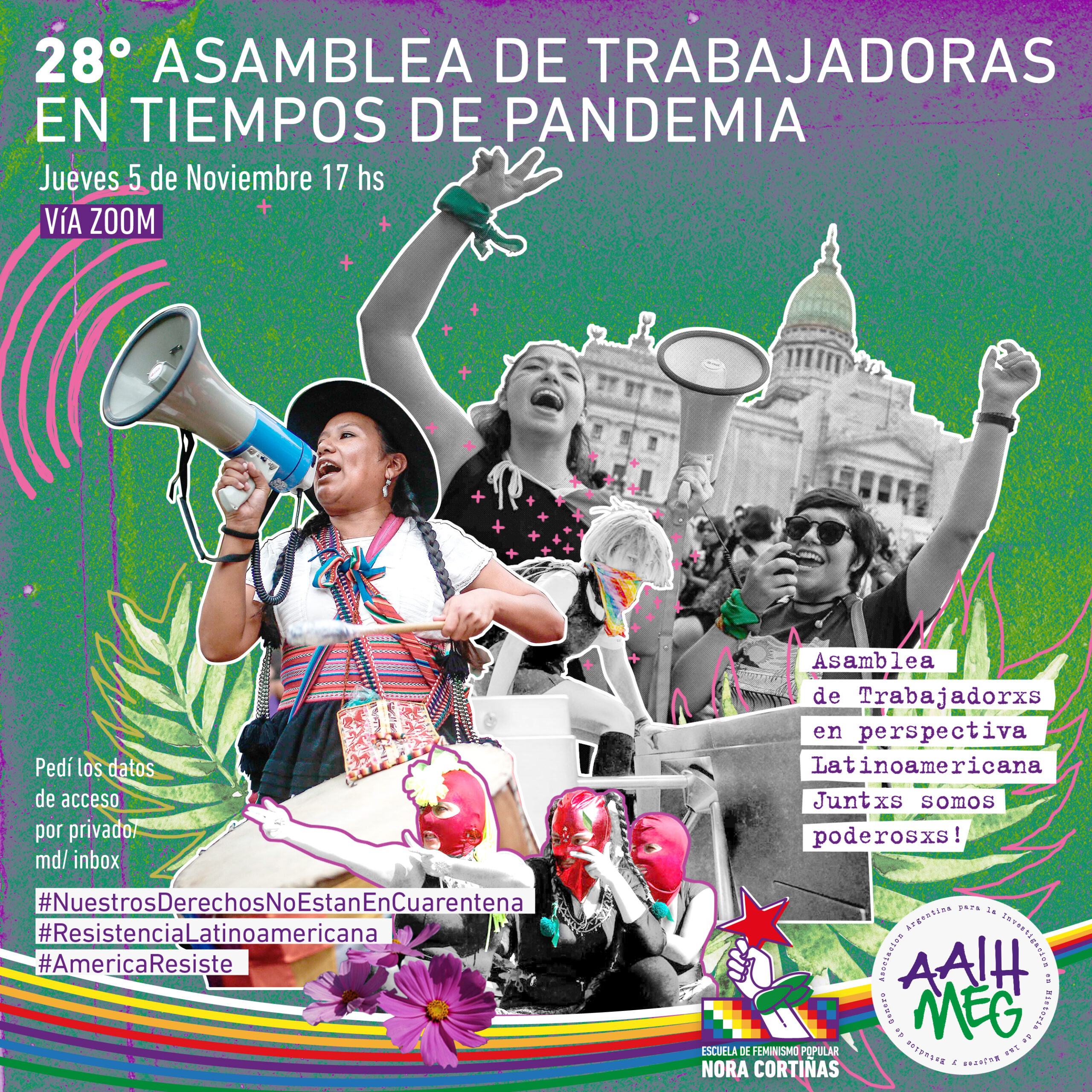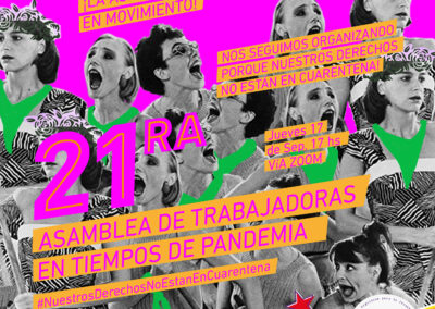 “Asamblea de Trabajadoras en tiempos de Pandemia” donde más de 80 trabajadoras se dieron cita por primera vez el 16 de abril a través de una plataforma virtual de La Escuela de Feminismo Popular Norita Cortiñas y la Asociación de Investigadoras de Historia de las Mujeres y Estudios de Género (AAIHMEG).