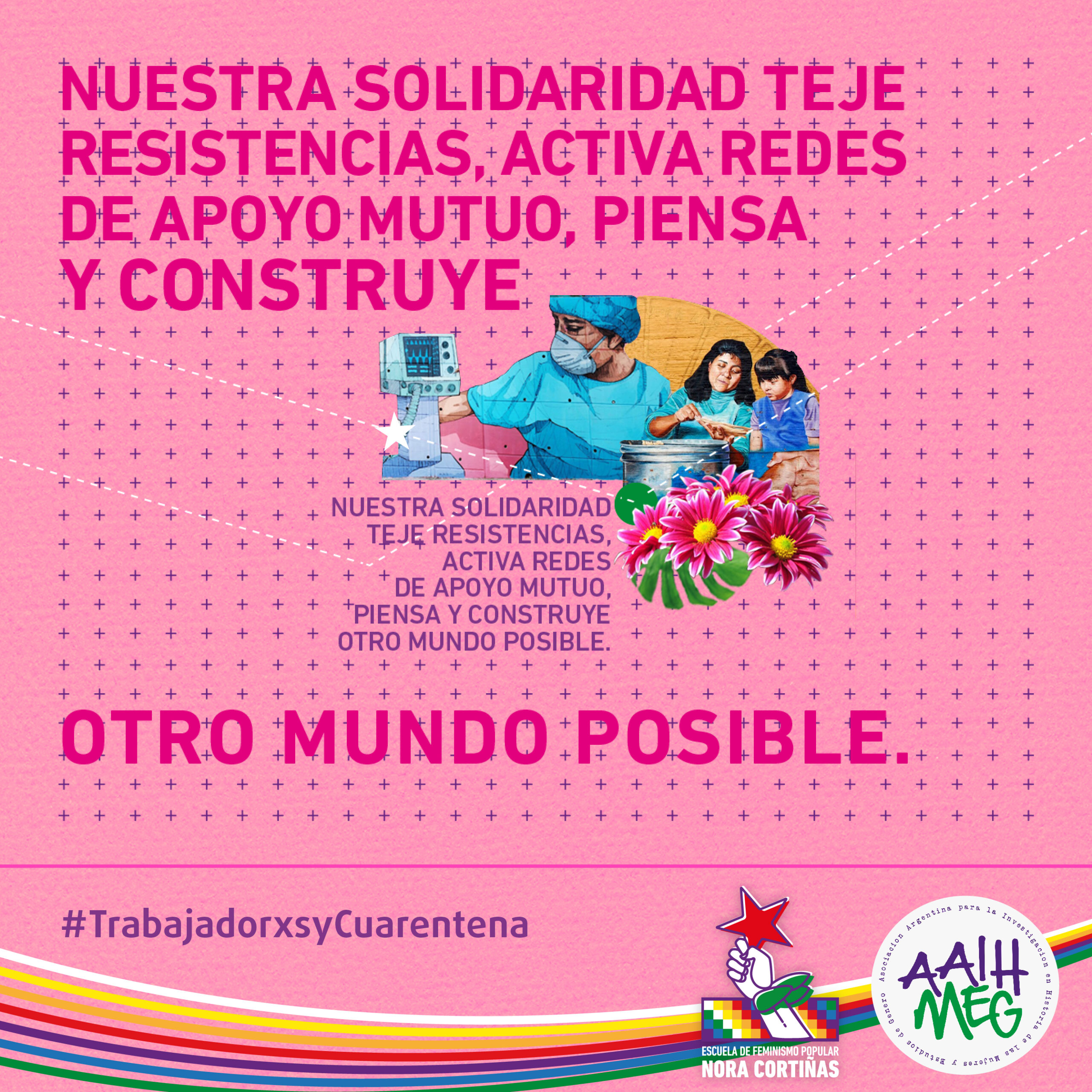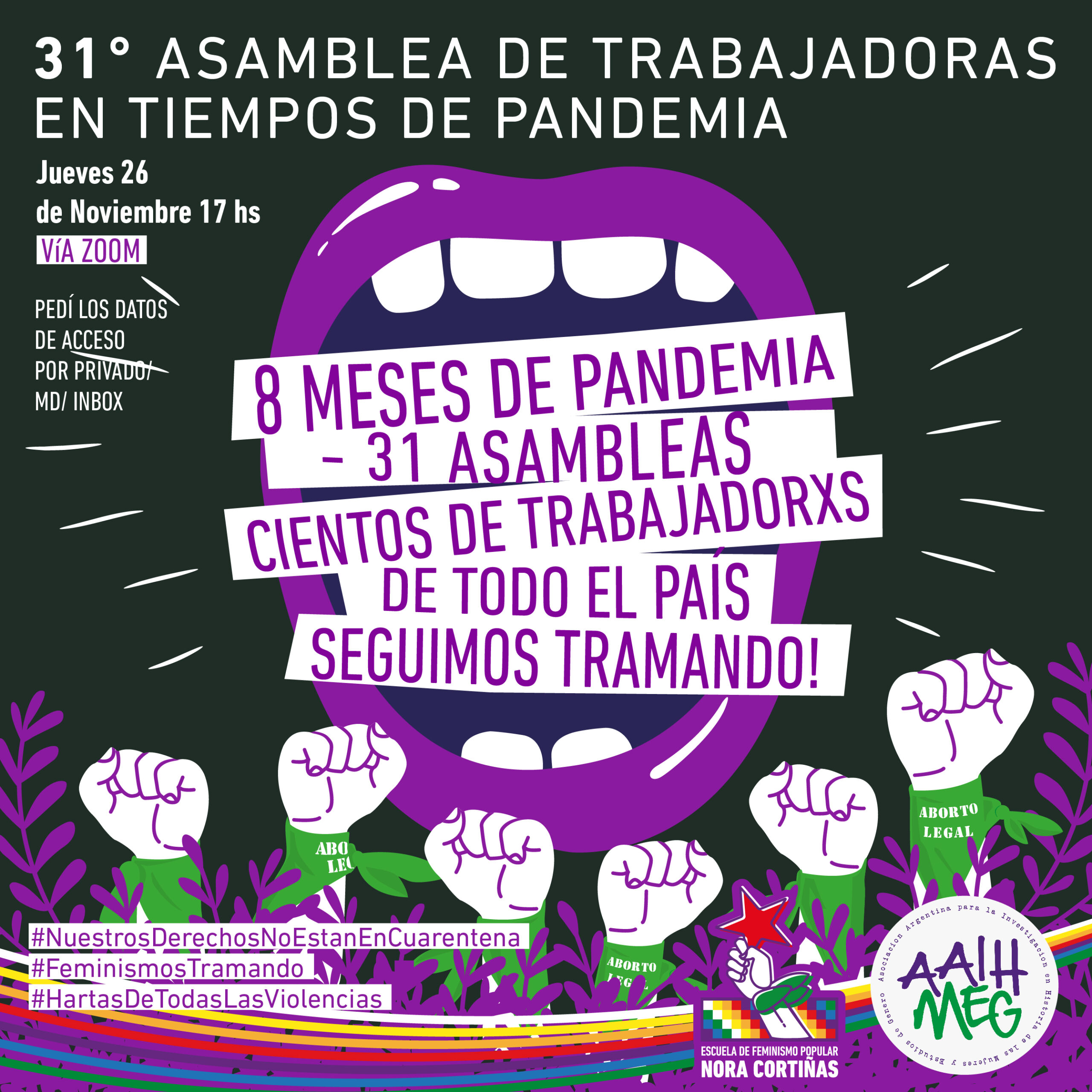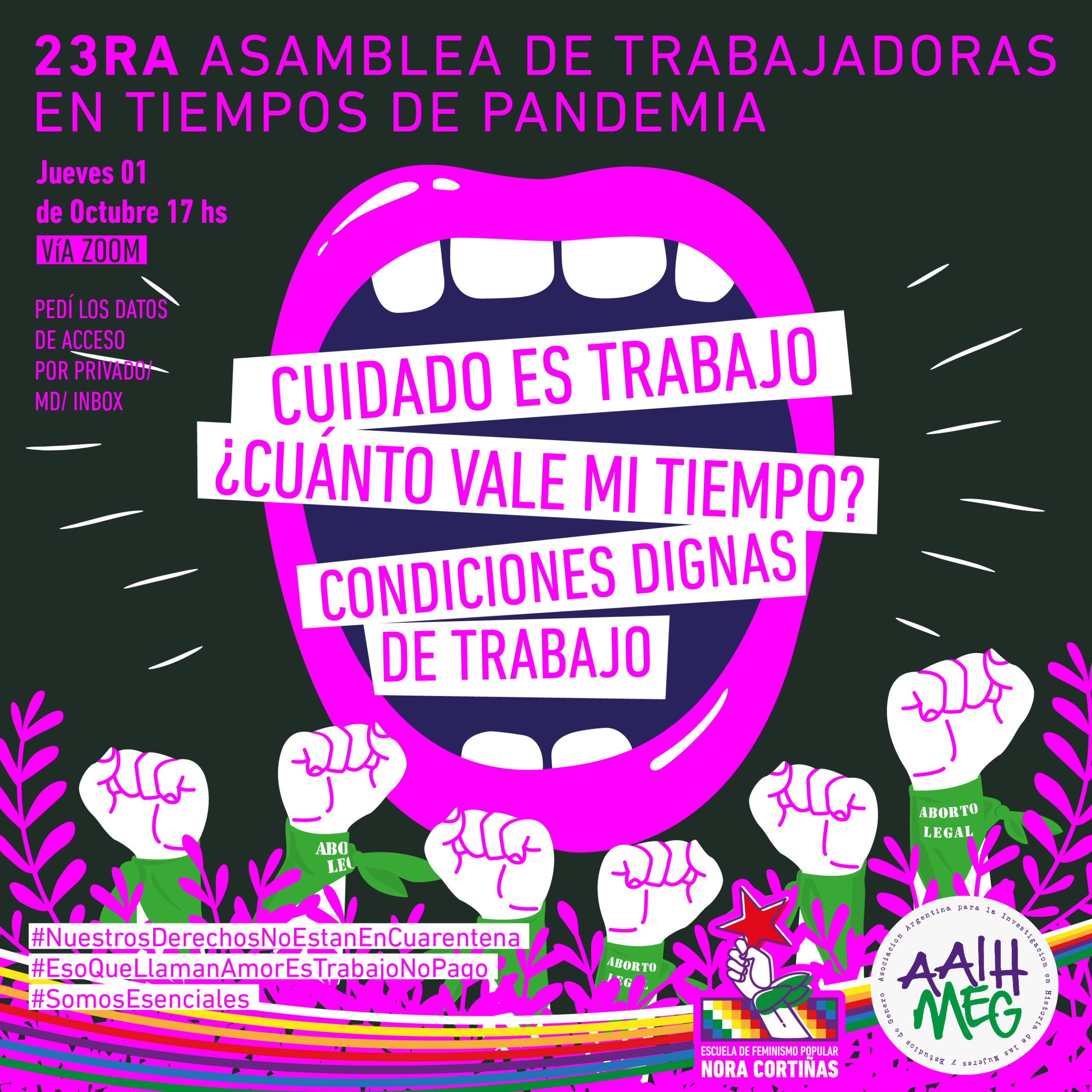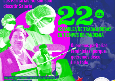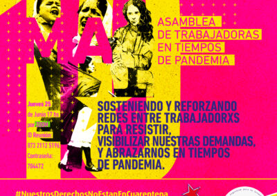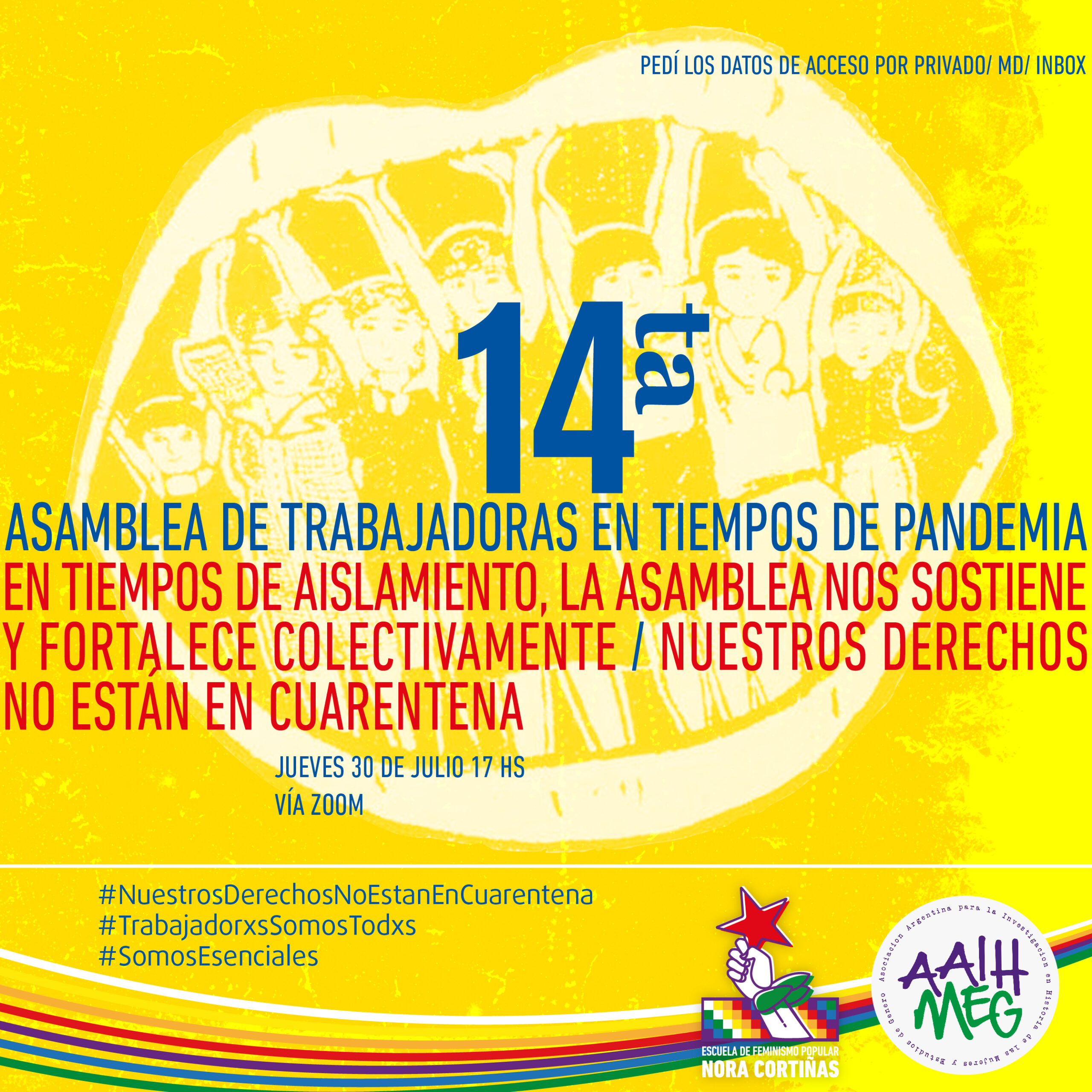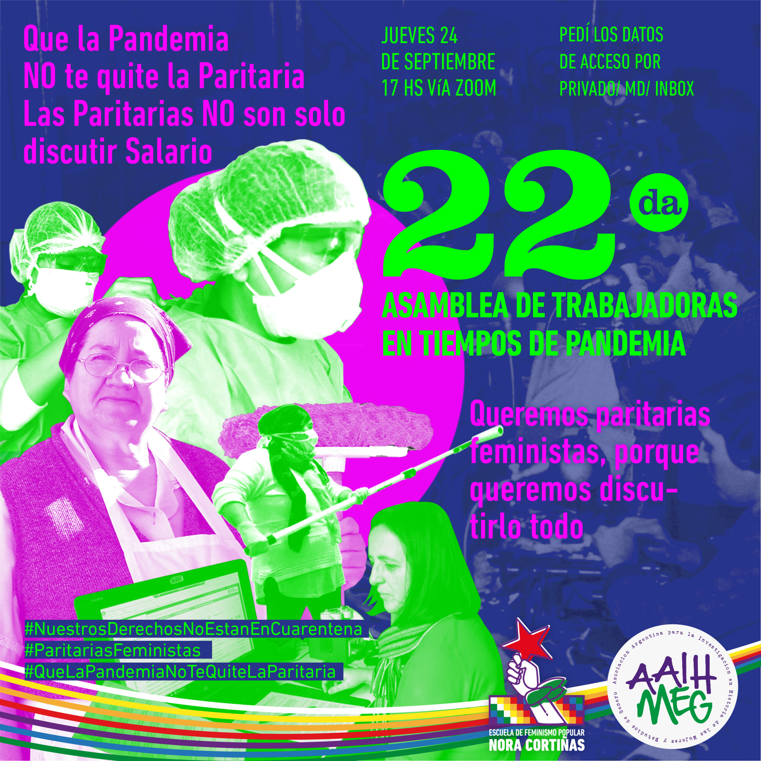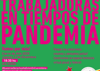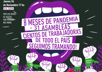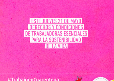 “Asamblea de Trabajadoras en tiempos de Pandemia” donde más de 80 trabajadoras se dieron cita por primera vez el 16 de abril a través de una plataforma virtual de La Escuela de Feminismo Popular Norita Cortiñas y la Asociación de Investigadoras de Historia de las Mujeres y Estudios de Género (AAIHMEG).