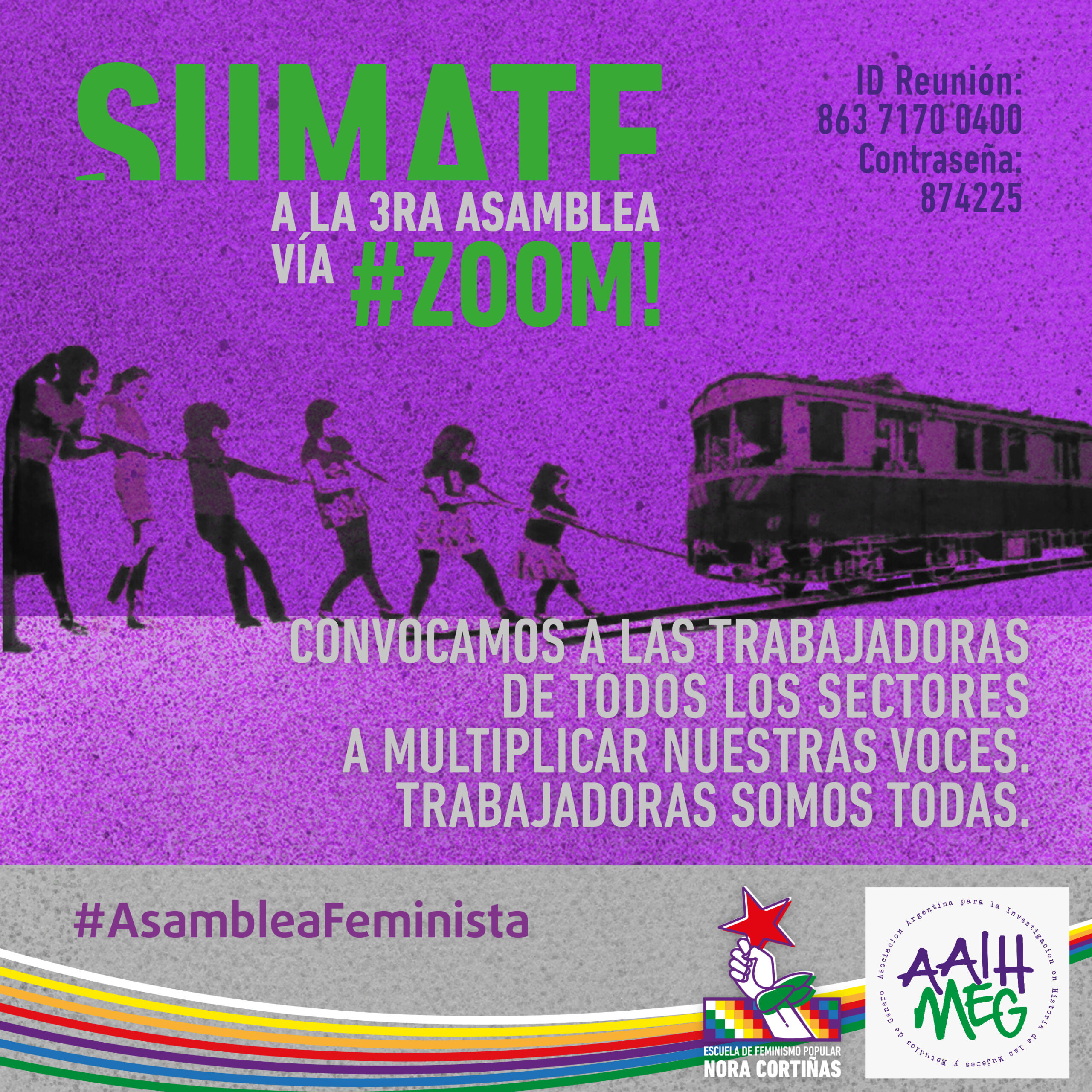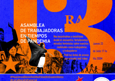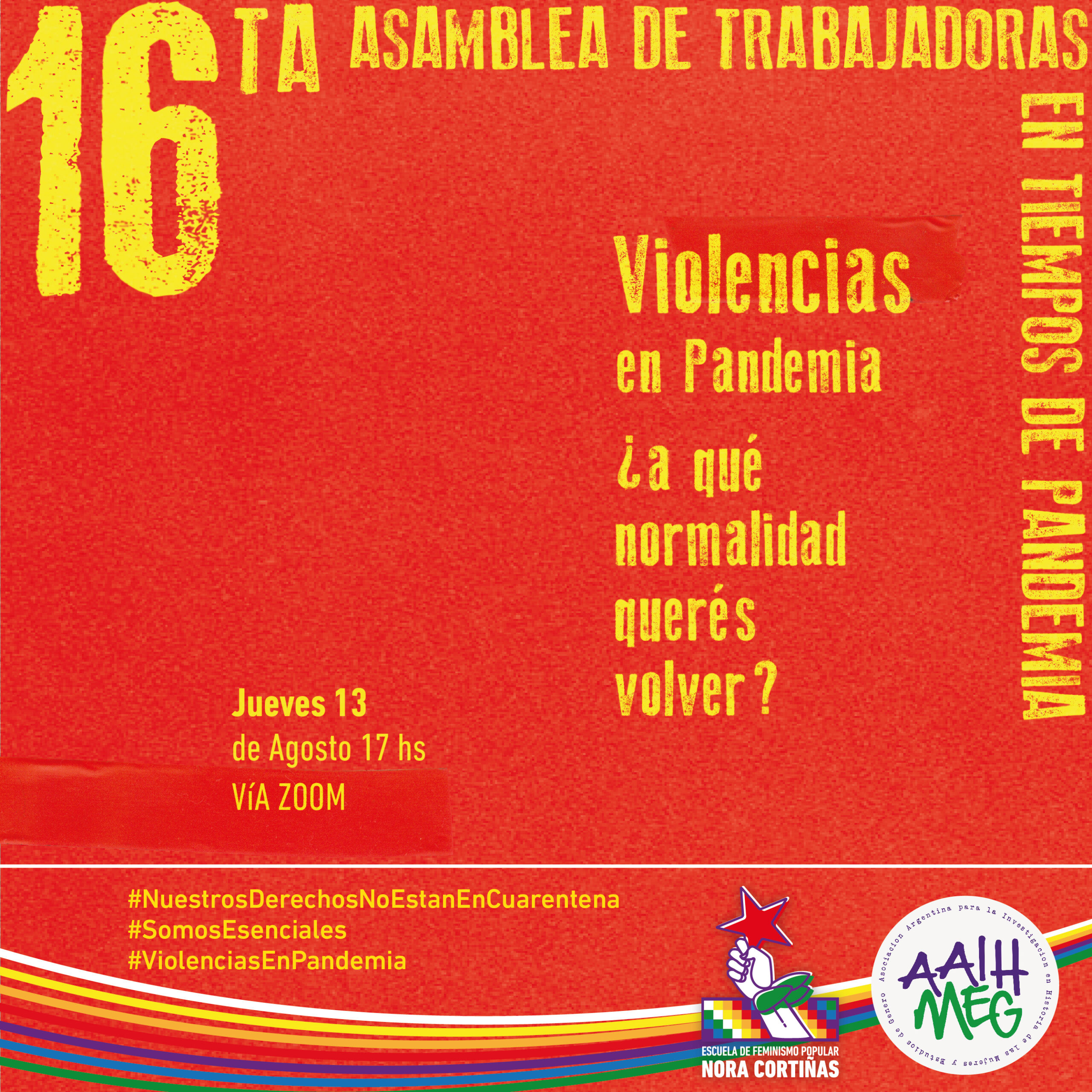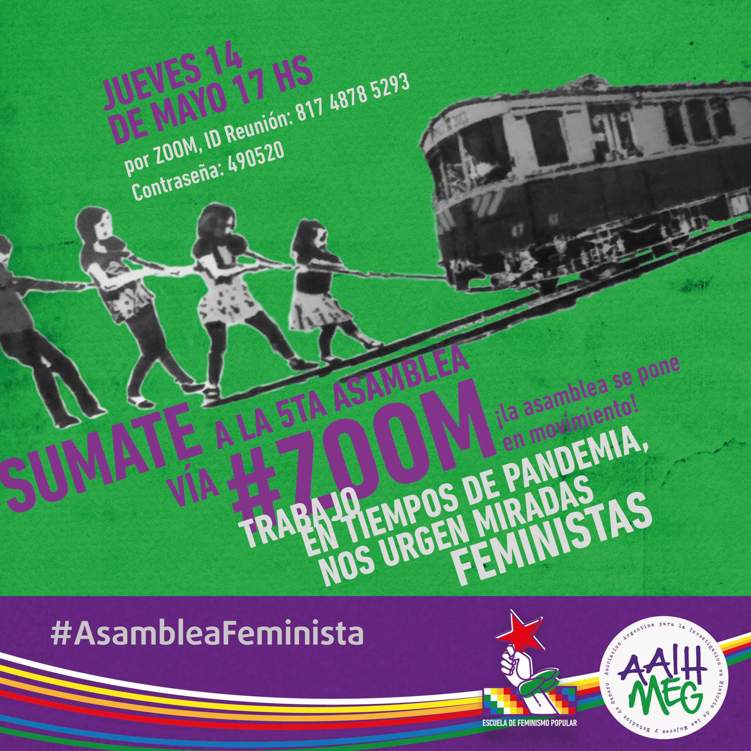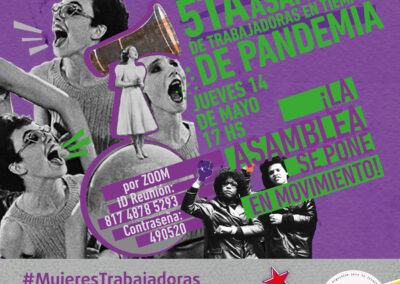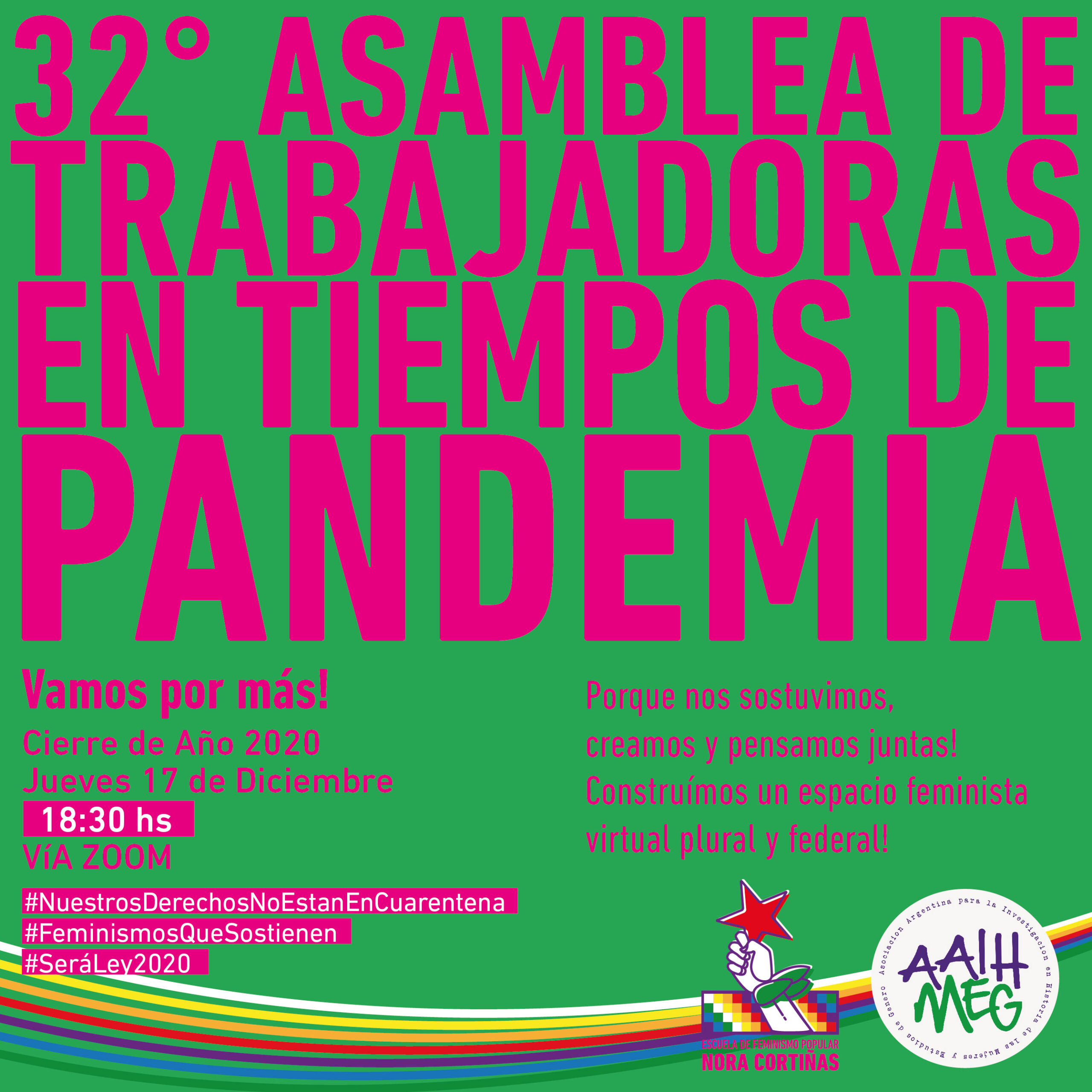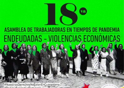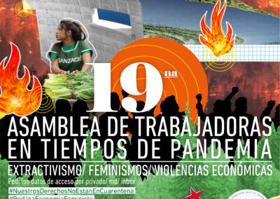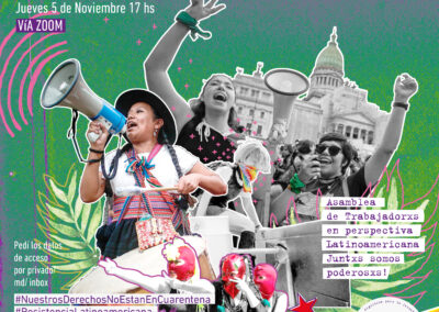 “Asamblea de Trabajadoras en tiempos de Pandemia” donde más de 80 trabajadoras se dieron cita por primera vez el 16 de abril a través de una plataforma virtual de La Escuela de Feminismo Popular Norita Cortiñas y la Asociación de Investigadoras de Historia de las Mujeres y Estudios de Género (AAIHMEG).