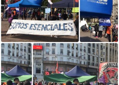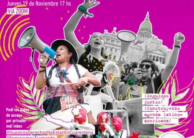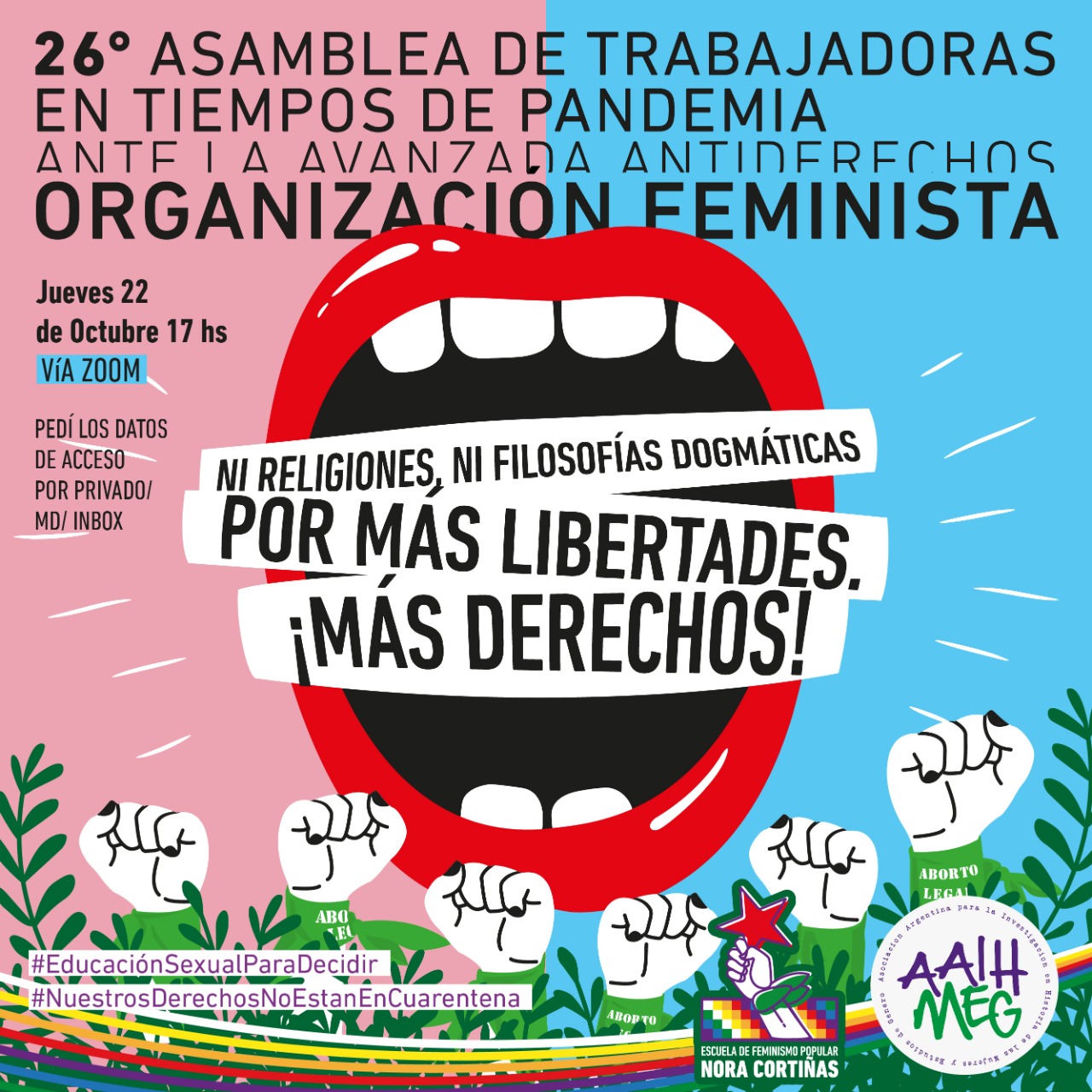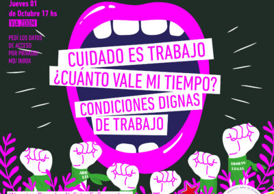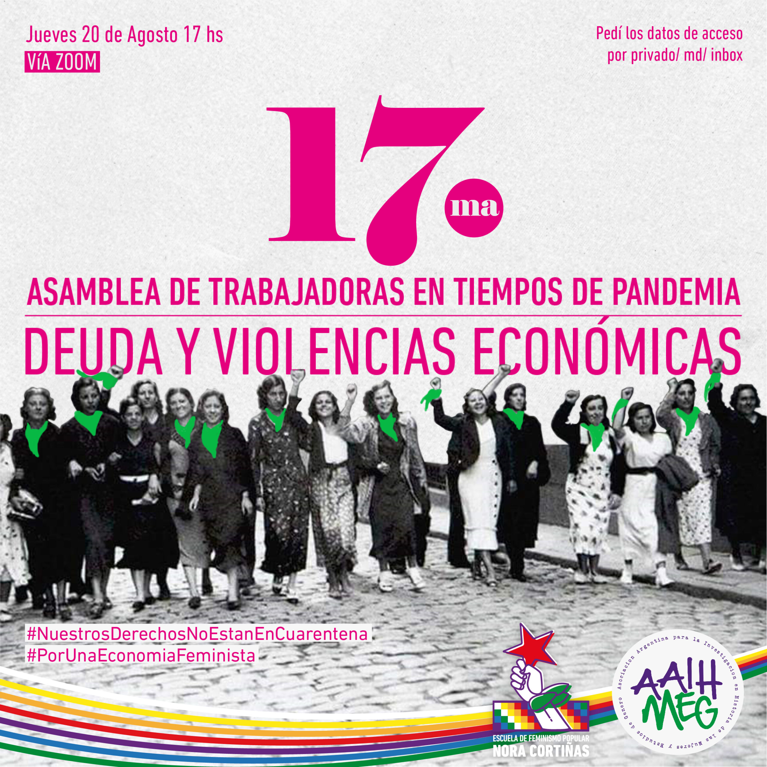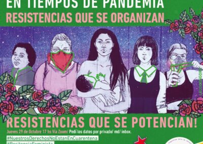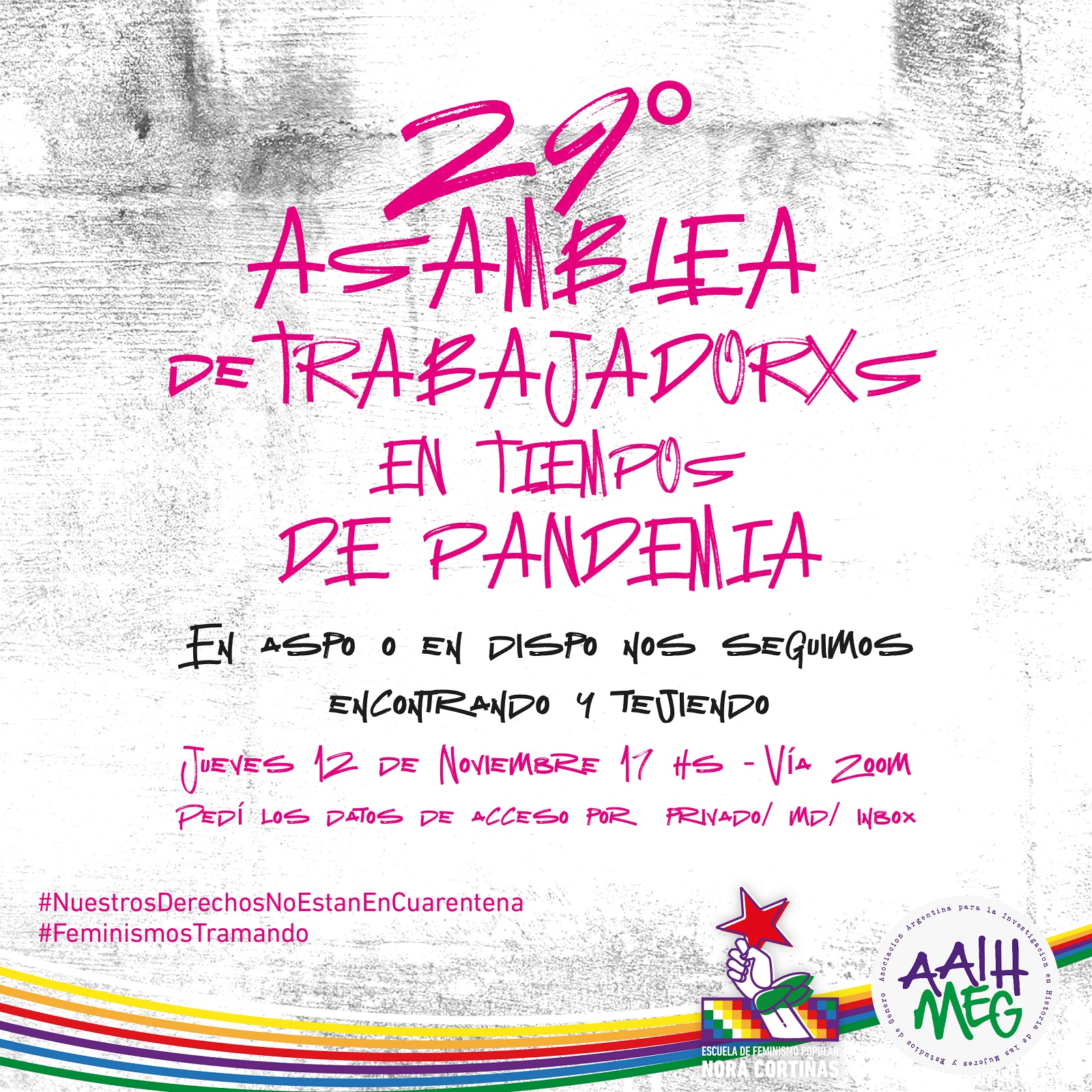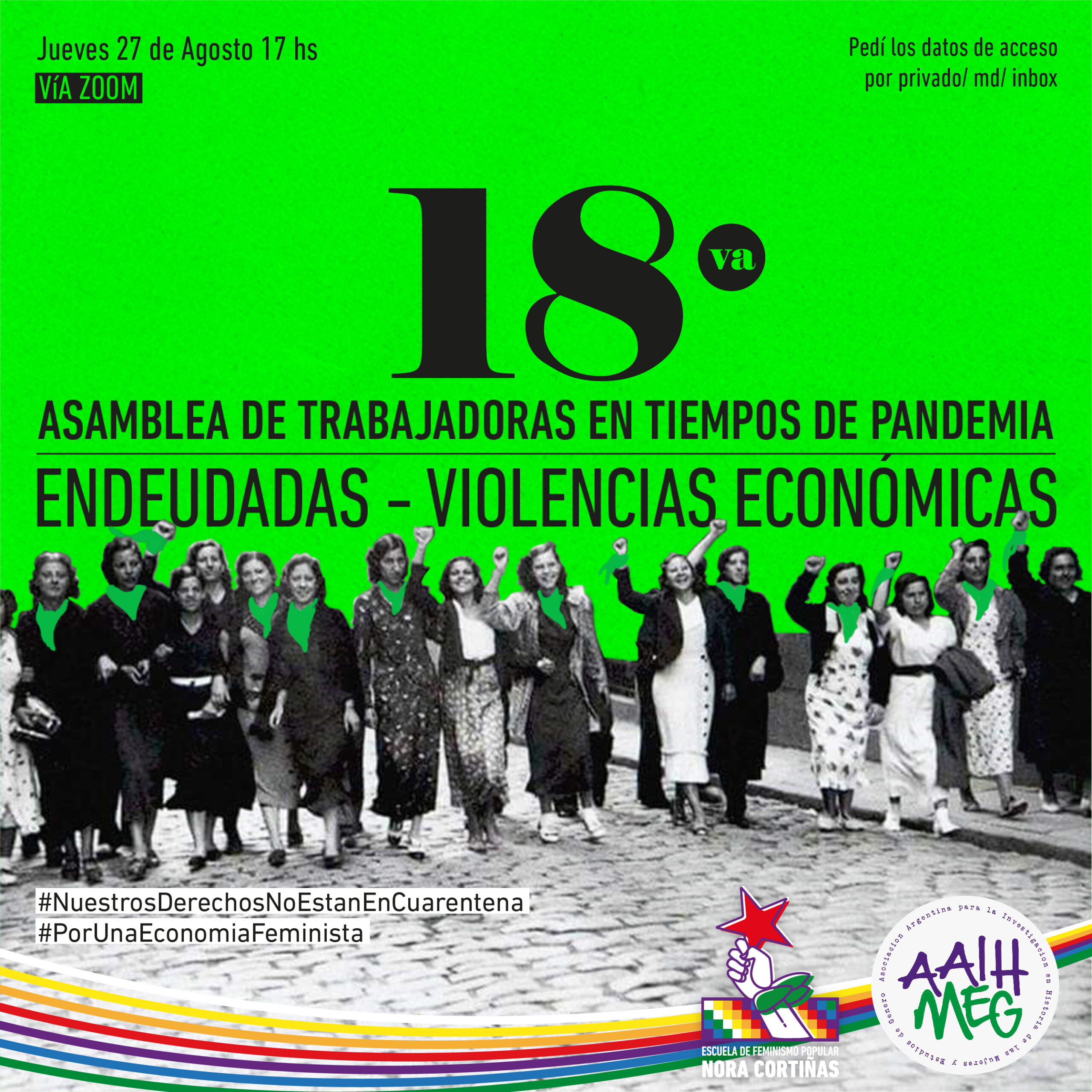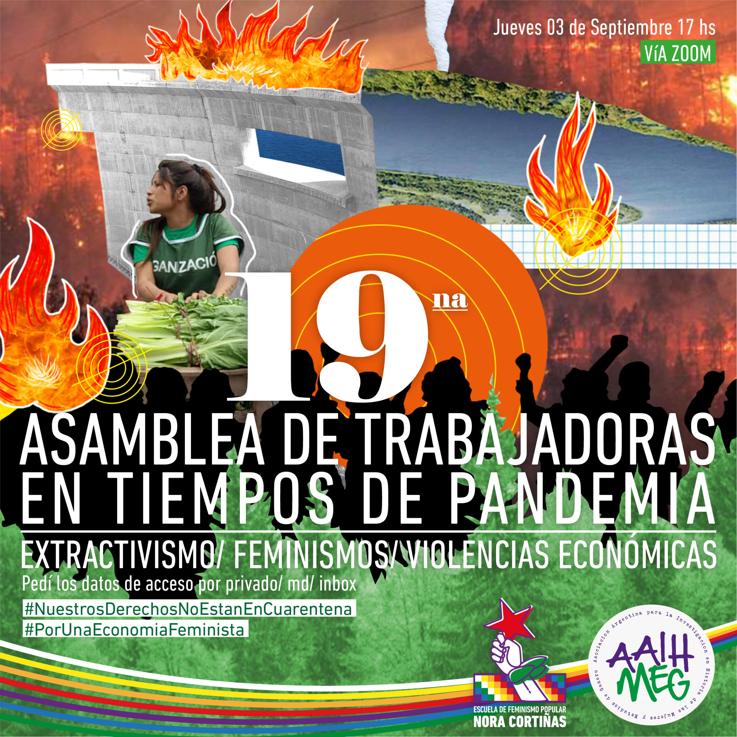 “Asamblea de Trabajadoras en tiempos de Pandemia” donde más de 80 trabajadoras se dieron cita por primera vez el 16 de abril a través de una plataforma virtual de La Escuela de Feminismo Popular Norita Cortiñas y la Asociación de Investigadoras de Historia de las Mujeres y Estudios de Género (AAIHMEG).