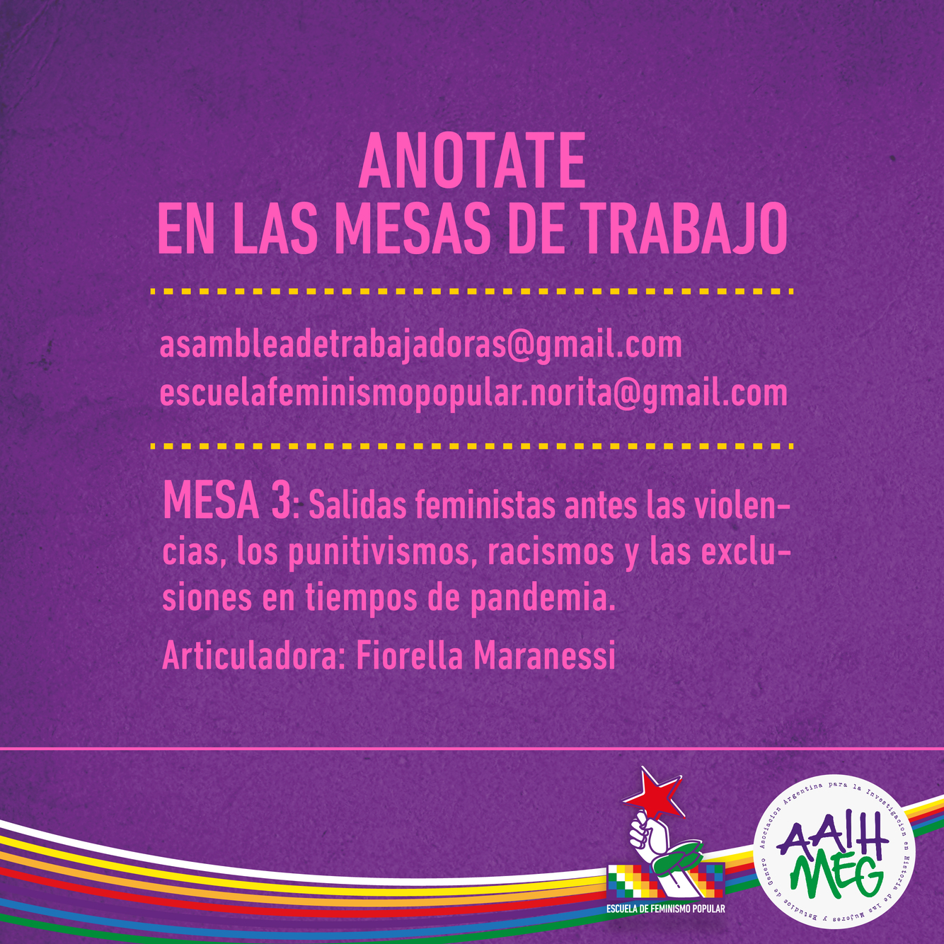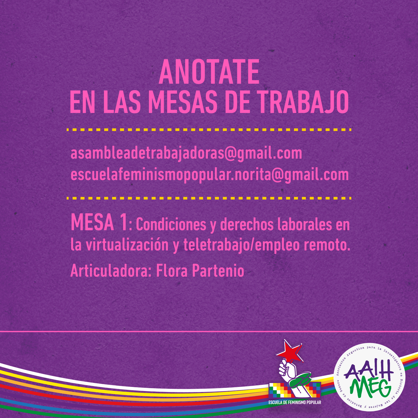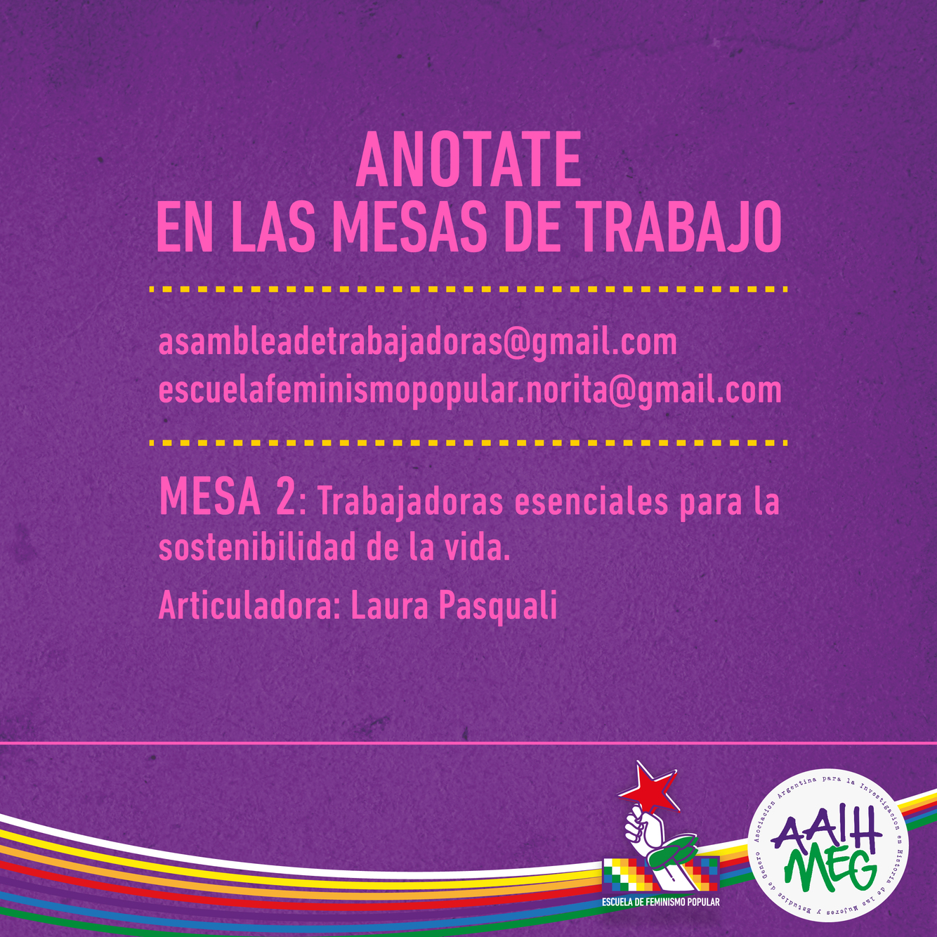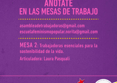 La Asamblea de Trabajadoras en Tiempos de Pandemia se sigue organizando, y convoca a todas a participar de alguna de las siguientes tres mesas de trabajo: