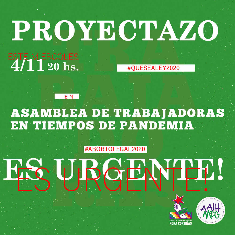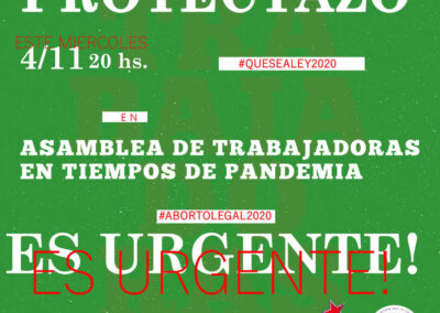 El confinamiento no silenció nuestras acciones y en pleno aislamiento con el PROYECTORAZO nos sumamos a las campañas para la sanción de la 27.610 IVE/ILE y reclamamos ES URGENTE! ABORTO LEGAL! Esta acción fue replicada por distintos barrios y texturas del AMBA y de todo el país.